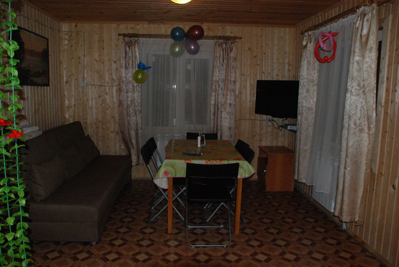 В доме: номер-студия, кухня с газовой плитой, эл. чайник, холодильник, СВЧ, набор посуды и кухонных приборов, мангал, шампура, кабельное, санузел, полотенца для лица и тела, постельное бельё, отопление, холодное и горячее водоснабжение.