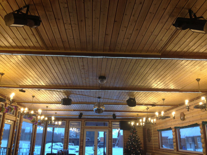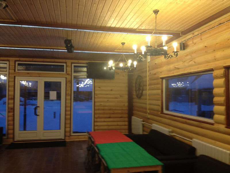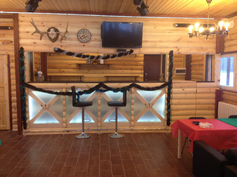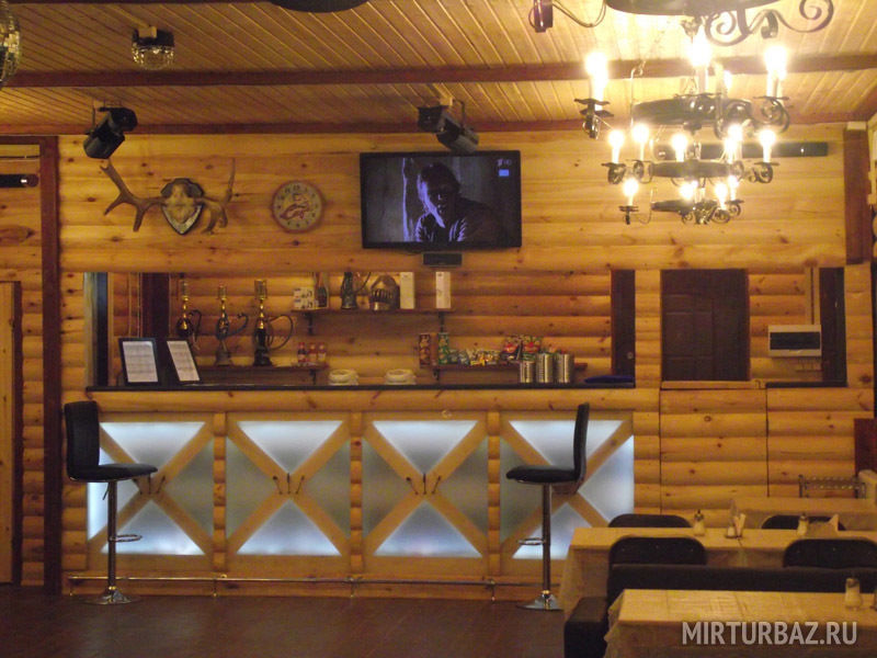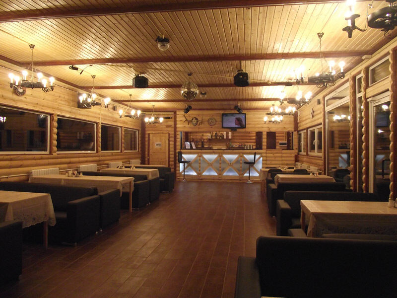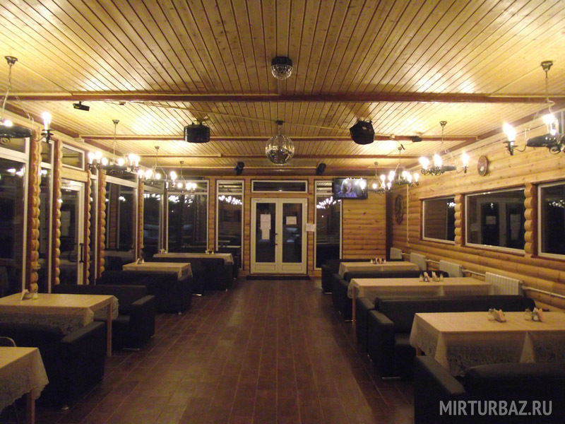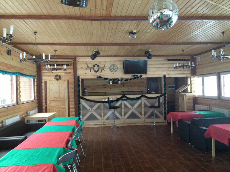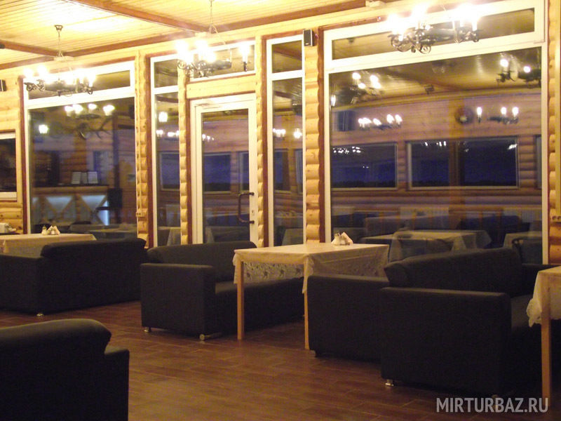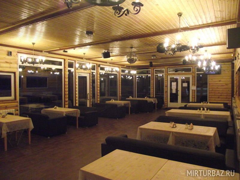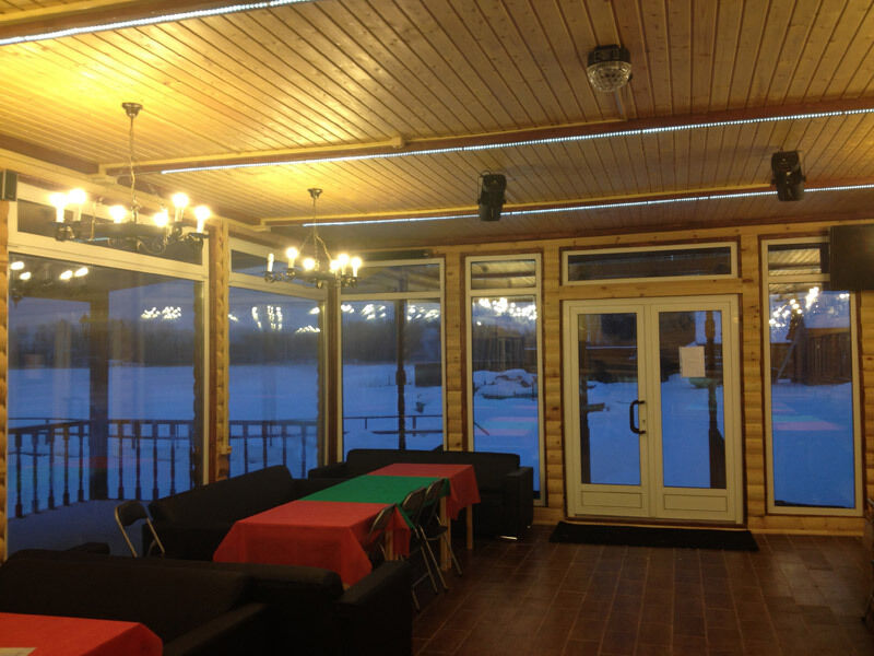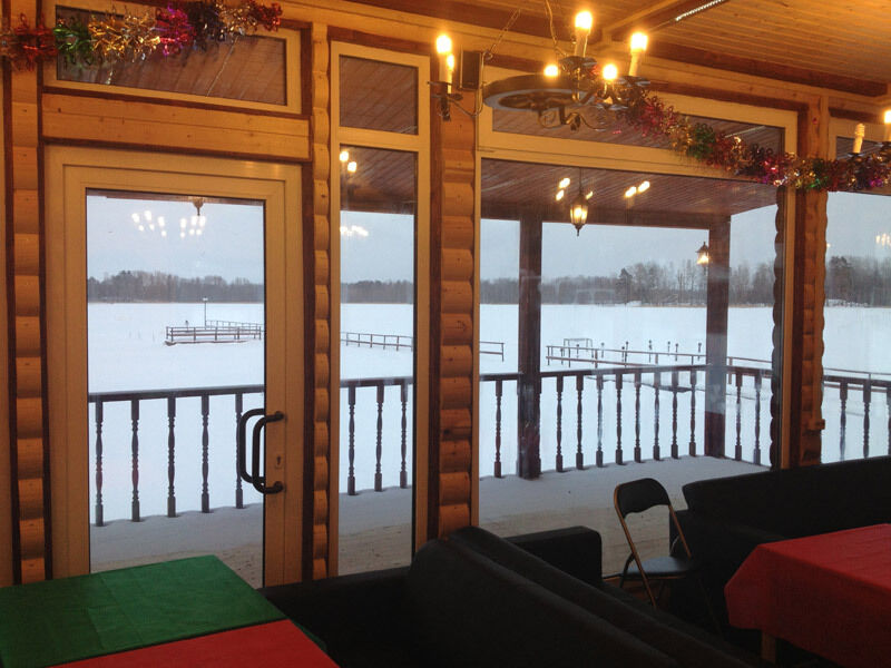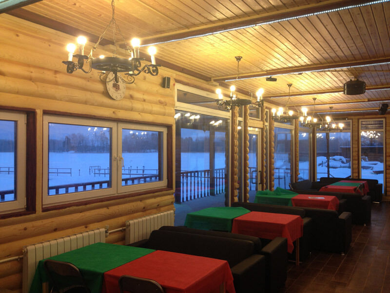 Банкетный зал с видом на озеро (караоке, музыка, DVD, кабельное, светомузыка, трансляция спортивных матчей, туалет, отопление) - 1500 руб/час, 10000 руб/сутки с 13.00 до 1.00 ночи.