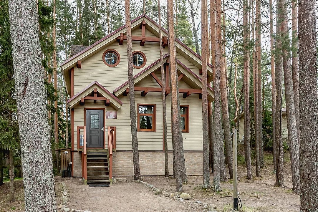 «Окунёвая» расположилась в 1.5 часах езды на машине от Петербурга, на берегу живописнейшей Дубковой бухты Финского залива.