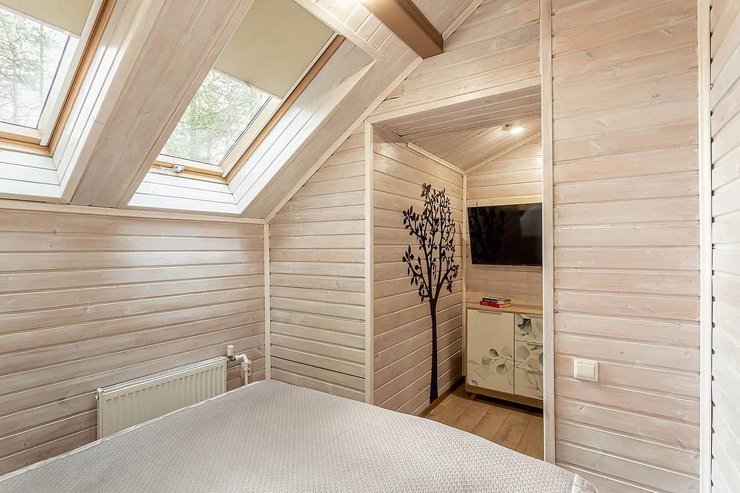 В каждом доме (100 кв.м.) - три спальни, просторная гостиная, сауна, wi-fi, гриль