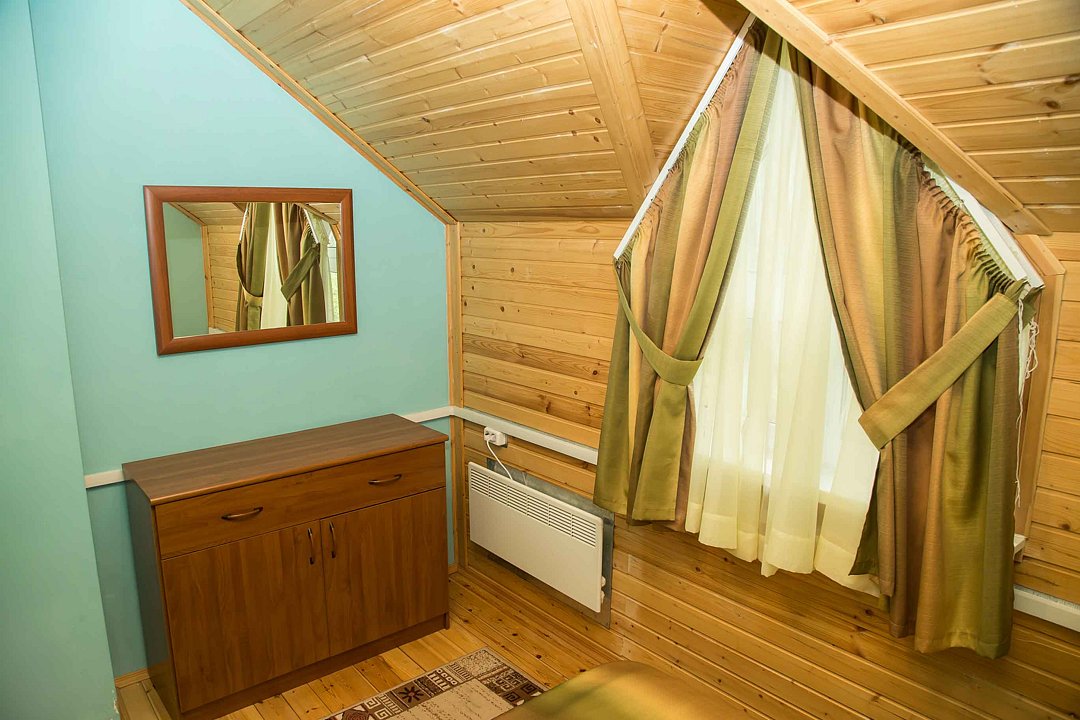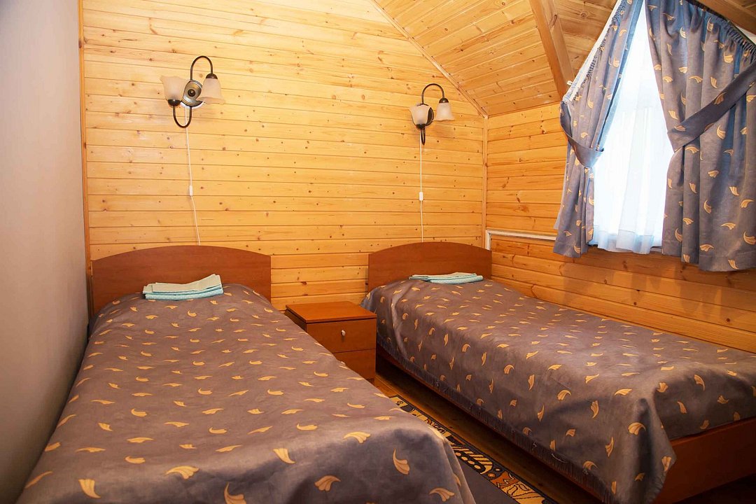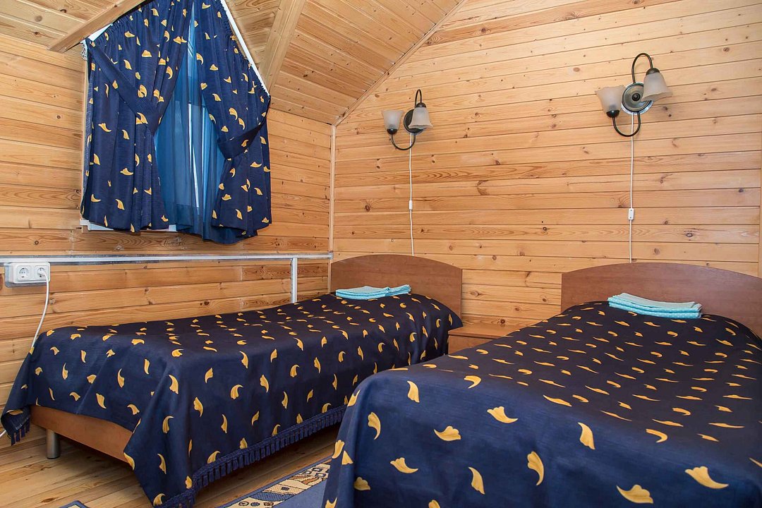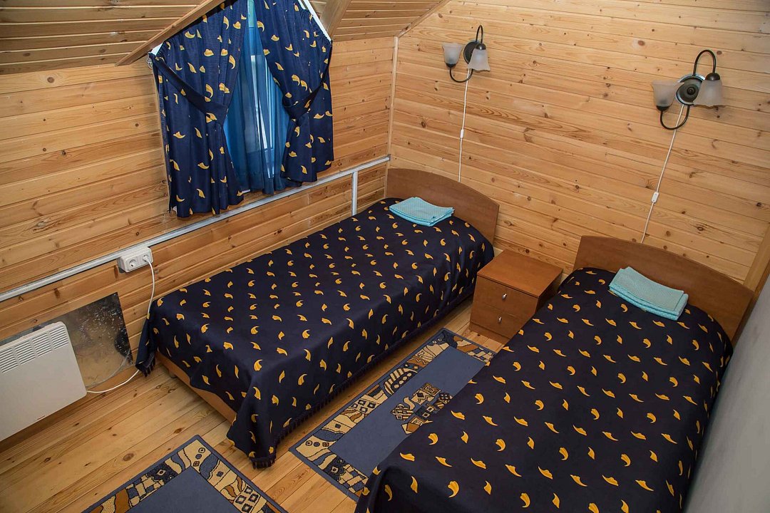 Часть главного дома базы отдыха с отдельным входом. Номер с Прихожей, санузлом, балконом. В каждом номере есть как двуспальные, так и отдельные кровати.
