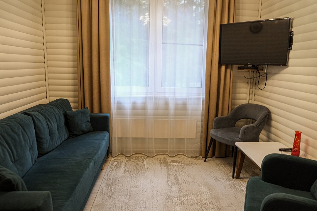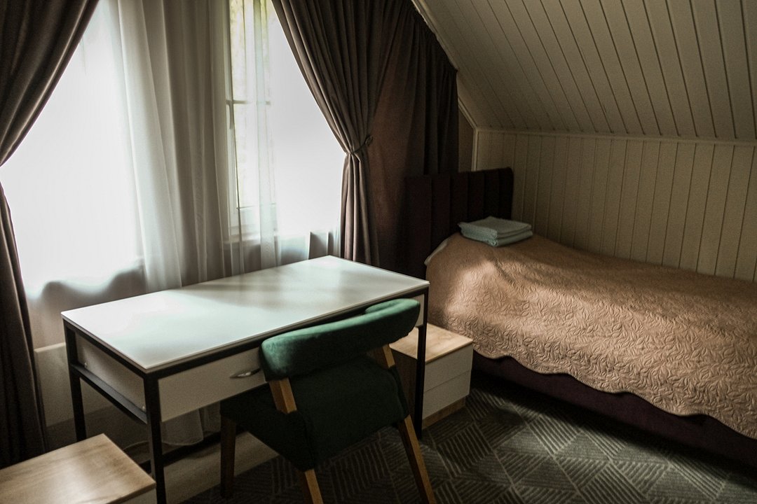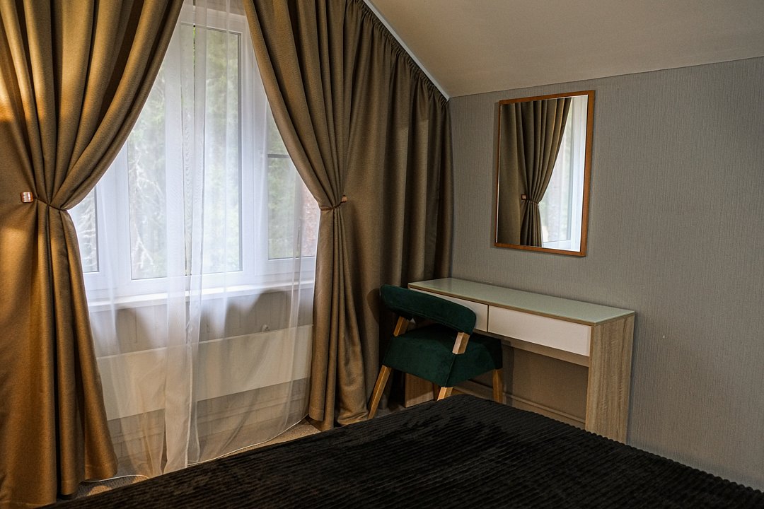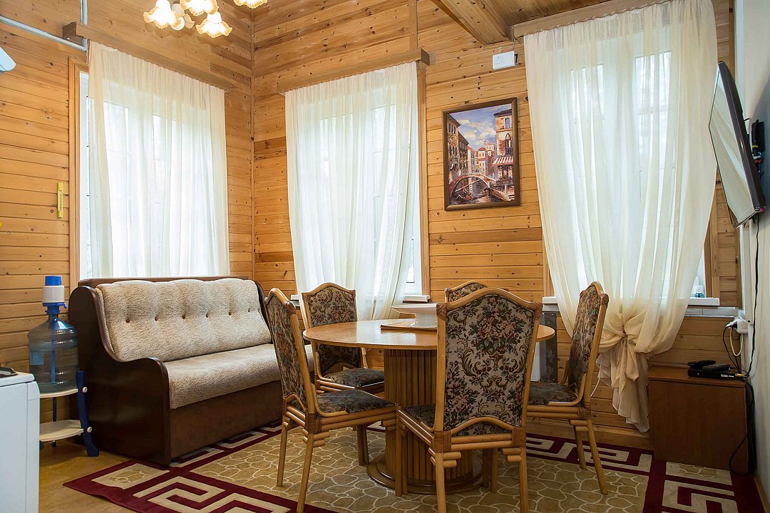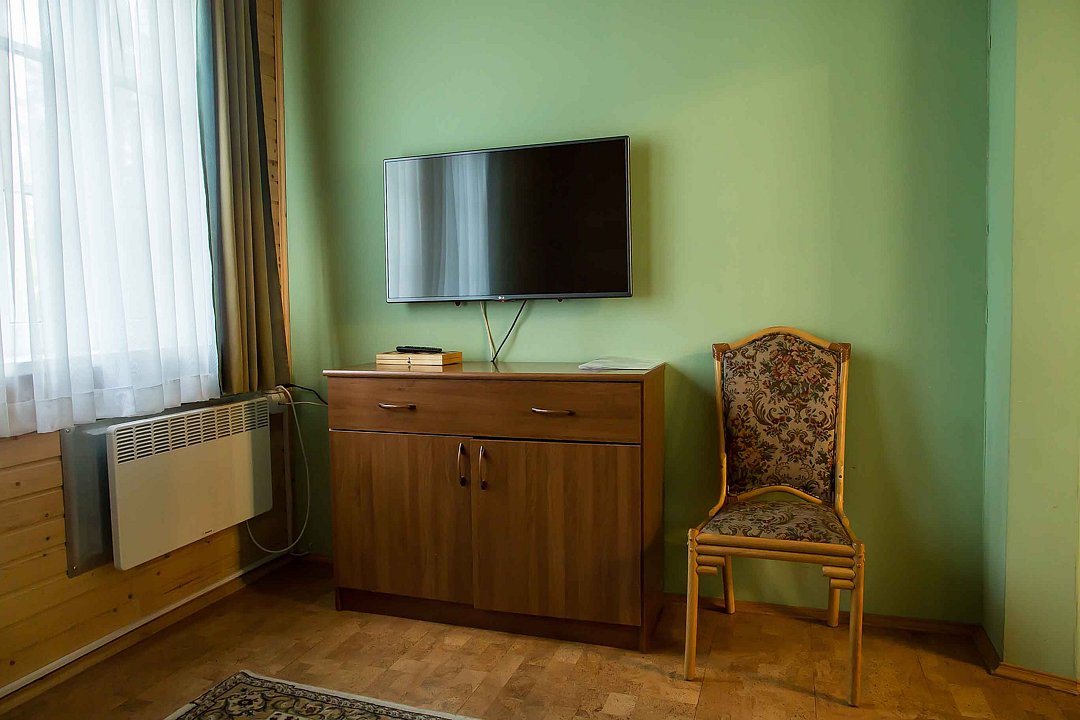Часть главного дома базы отдыха с отдельным входом. Номер с Прихожей, санузлом, балконом. В каждом номере есть как двуспальные, так и отдельные кровати.