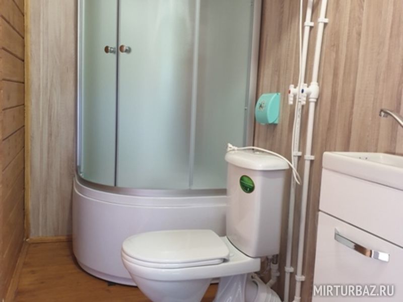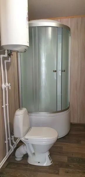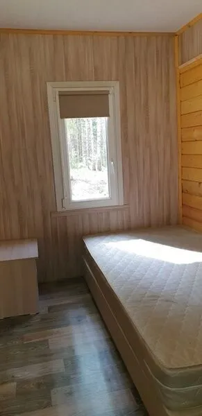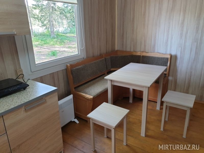 Коттедж "Кувшинка" вместимостью до 5-ти отдыхающих. Расположен на берегу оз. Раковическое. Открытая терраса, гостиная-кухня, в ней кухонный уголок, стол, табуретки, холодильник, индукционная плитка, э/чайник, кухонные принадлежности. Две отдельные комнаты с двухъярусной кроватью и двухспальной соответственно. Водоснабжение из собственной скважины. Санузел с душевой кабиной. Парковка.