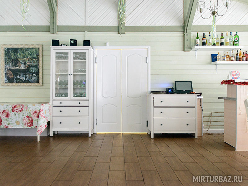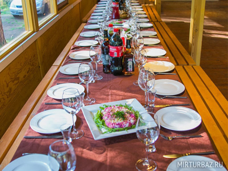 Вместимость зала – до 120 гостей.Просторный зал, стилизованный под старину, прекрасно подойдет для проведения любых мероприятий и праздников. Длинные дощатые столы, массивная барная стойка, деревянные балки и рустикальные элементы – неповторимая атмосфера нашего банкетного зала сделает ваш праздник незабываемым!