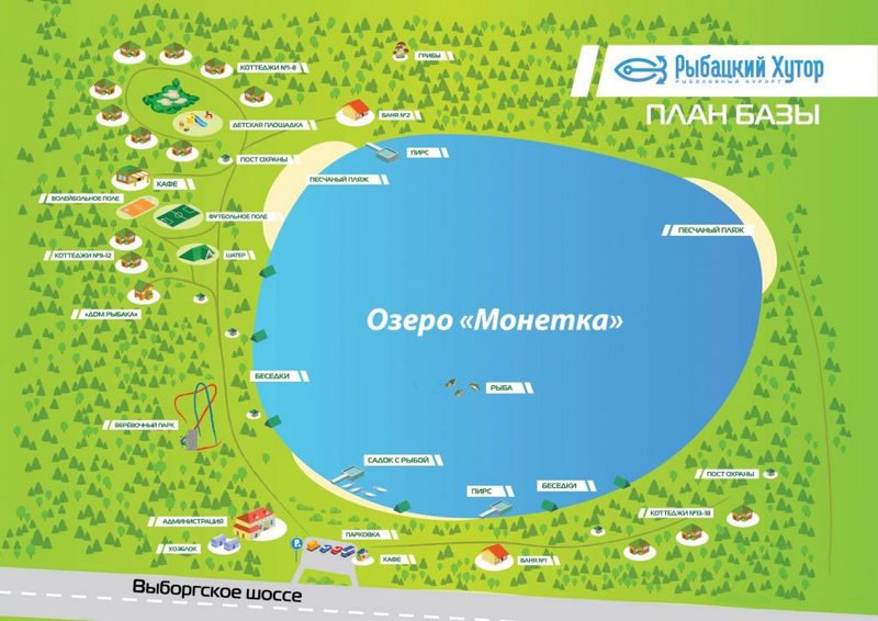 «Рыбацкий Хутор» — рай для рыболовов и ценителей загородного отдыха. Он был задуман и реализован как рыболовный курорт в экологически чистом районе Карельского перешейка. Перед специалистами была поставлена задача, найти подходящий для зарыбления «экзотическими» видами рыб водоём, создать там всю необходимую инфраструктуру и развивать в соответствии с потребностями клиентов.