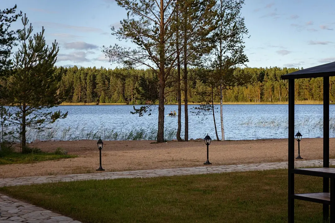 Гостям доступен собственный берег озера с оборудованным пляжем.