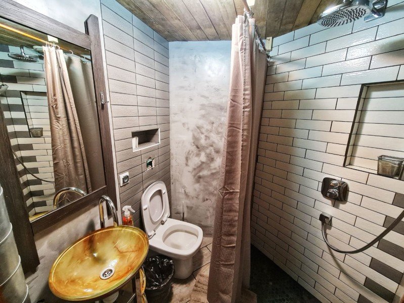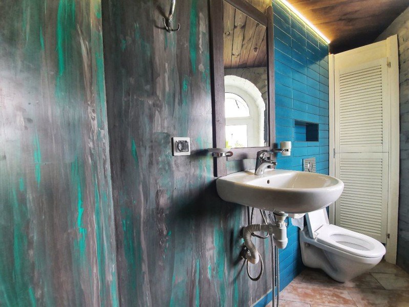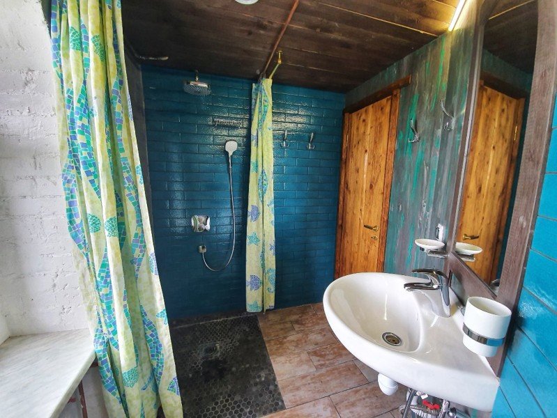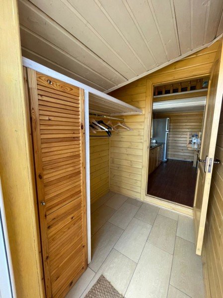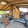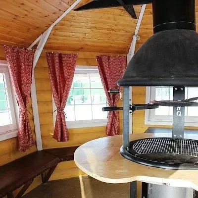 Гости могут воспользоваться мангалом, разделочным столом и раковиной с горячей водой. Это создает удобные условия для приготовления пищи и отдыха на открытом воздухе.