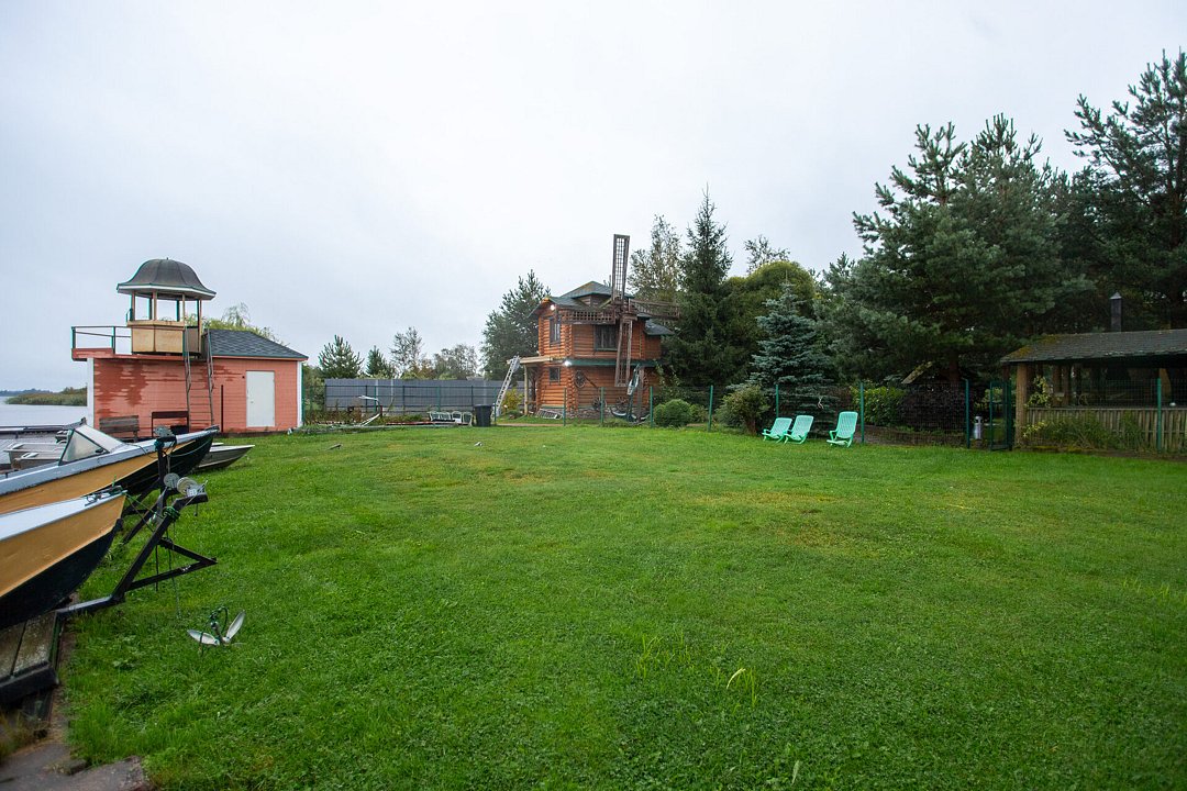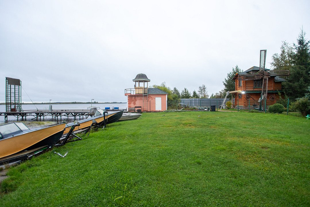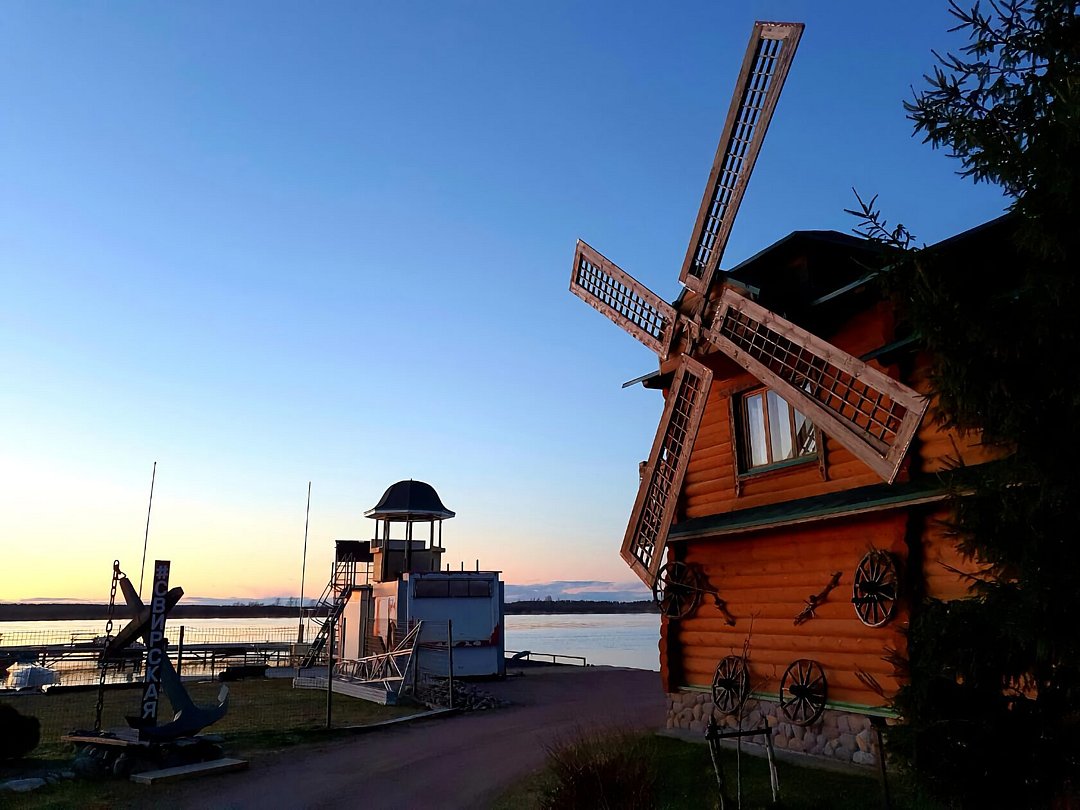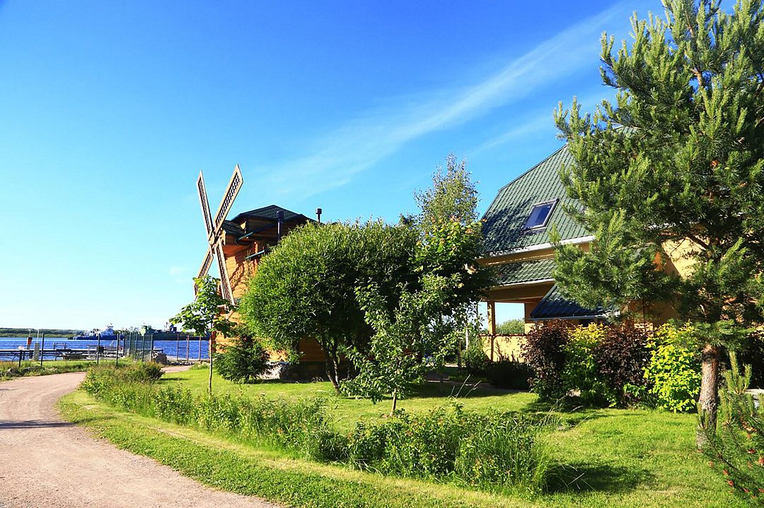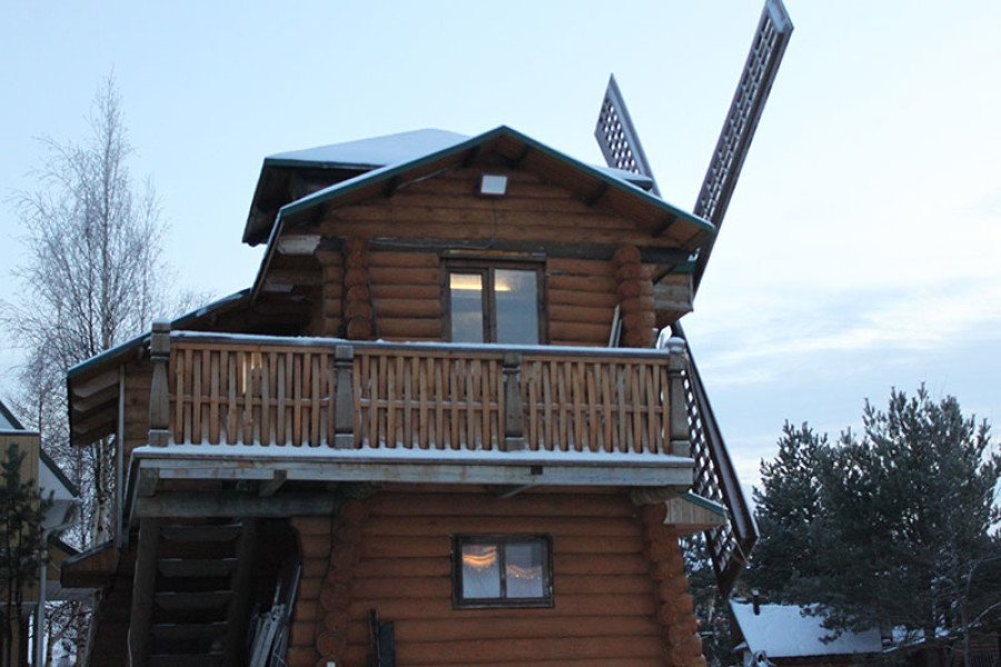 Небольшой уютный коттедж-мельница расположен рядом с пирсом. С балкона открывается прекрасный вид на реку Свирь.