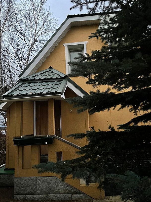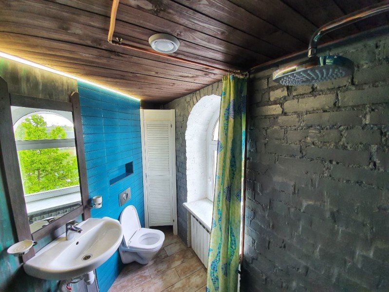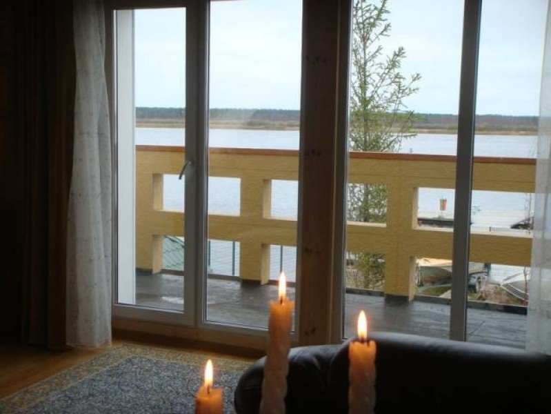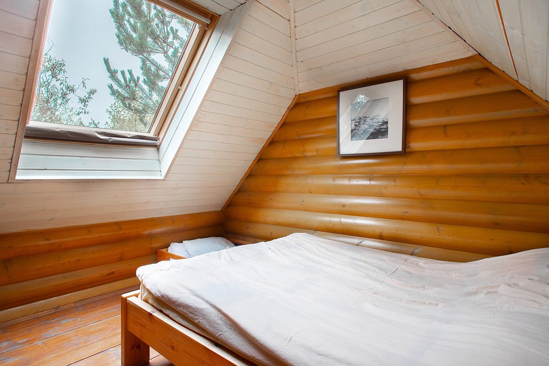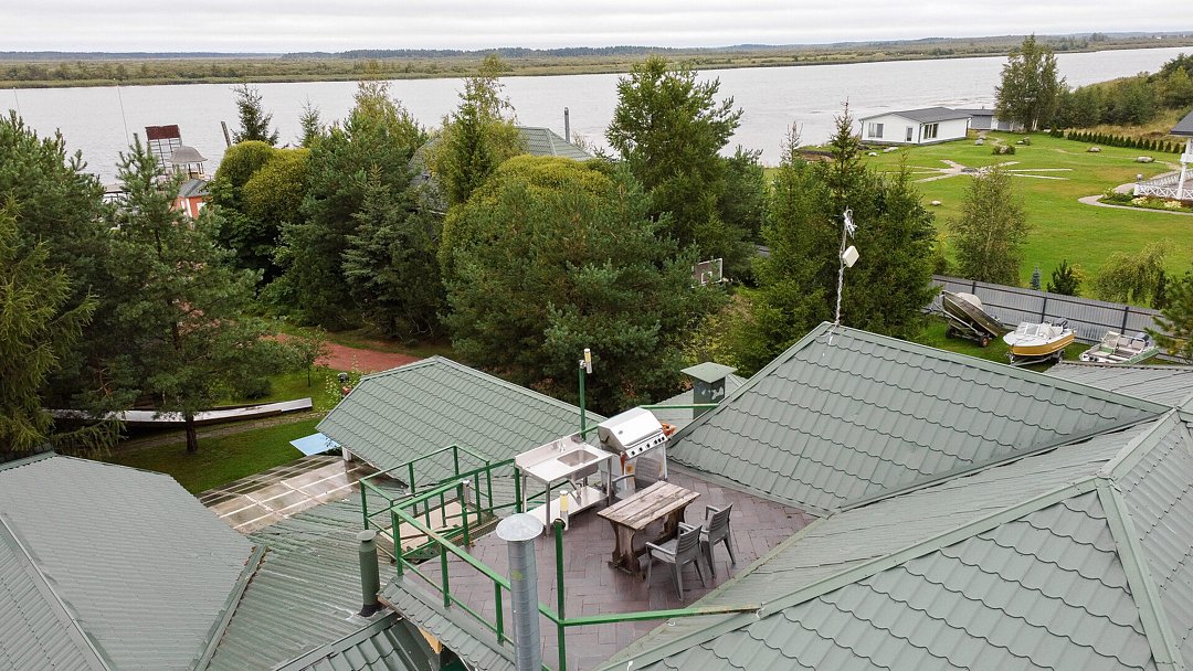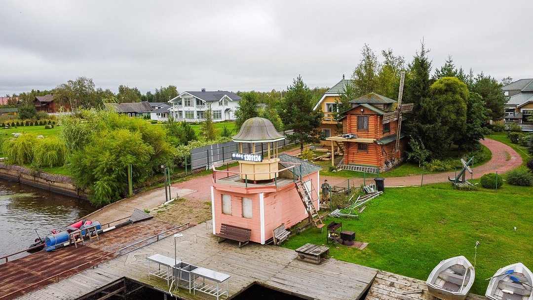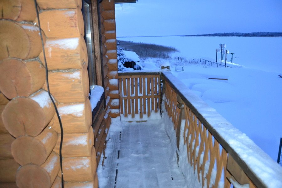 Небольшой уютный коттедж-мельница расположен рядом с пирсом. С балкона открывается прекрасный вид на реку Свирь.