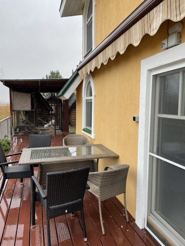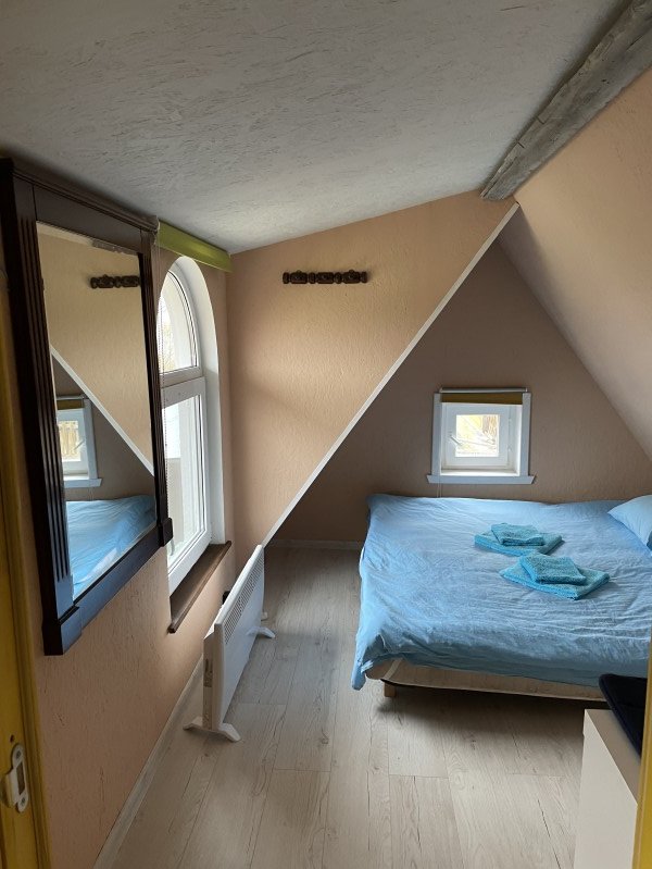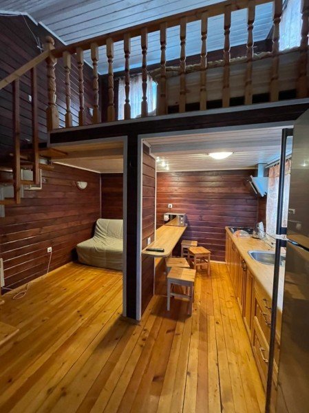 Половина уютного дуплекса с отдельным входом и беседкой, в которой можно отдохнуть после рыбалки с видом на пруд с лебедями или пожарить мясо на мангале. В дуплексе не изолированные комнаты, а общее открытое пространство между первым и вторым этажами.