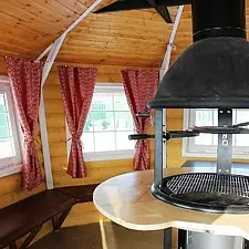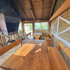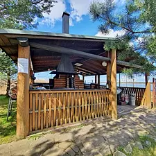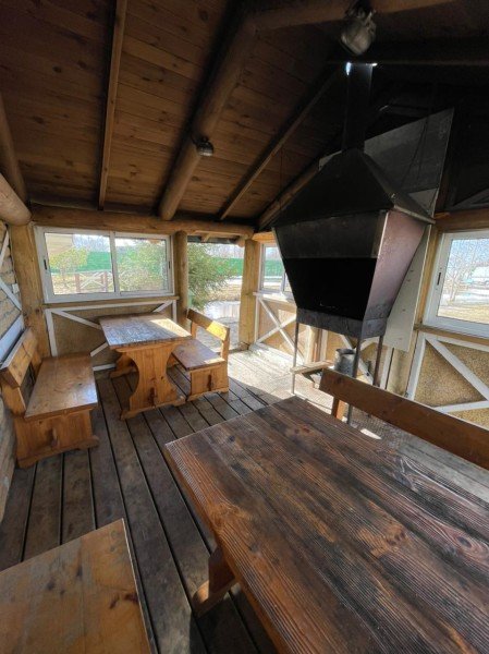 У реки расположена беседка, состоящая из двух частей, где могут разместиться до шестнадцати человек. Также есть возможность арендовать половину беседки для восьми гостей.