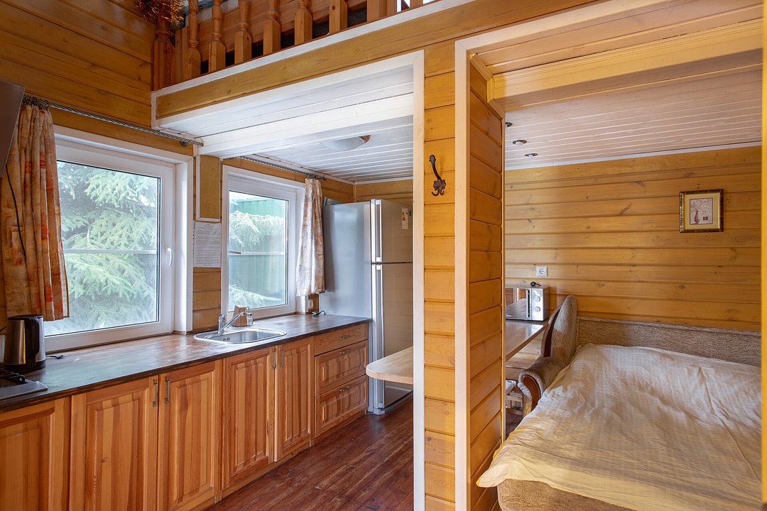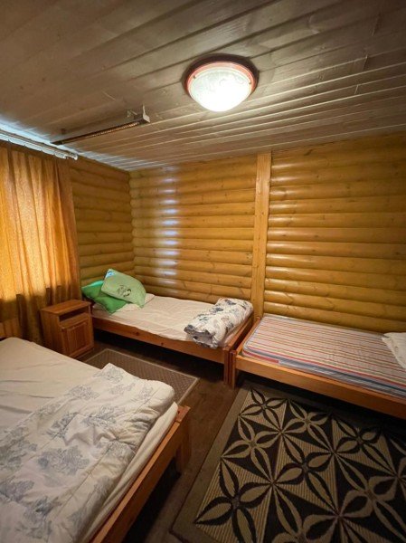 Отличный деревянный комфортабельный коттедж со всеми удобствами подойдет для отдыха любой компании – от двух до тринадцати человек (возможно снять отдельную комнату или предоставить дополнительные спальные места).