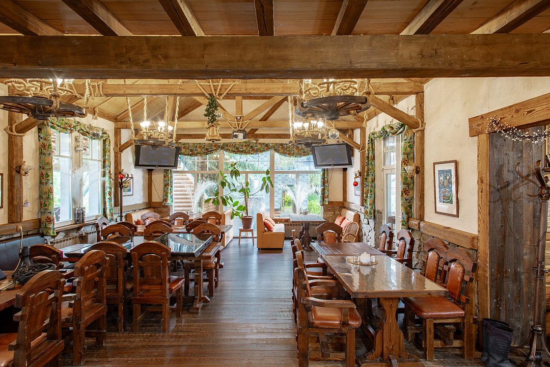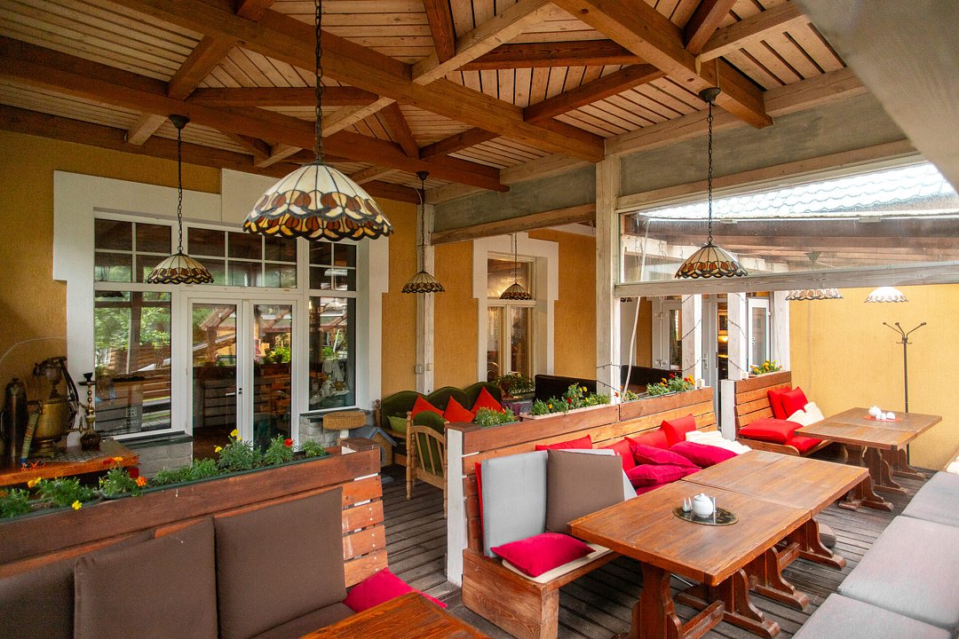 В заведении имеется банкетный зал на пятьдесят человек с большим окном, из которого открывается вид на мини-зоопарк. Также есть терраса на двадцать гостей для проведения праздников в теплое время года. Ресторан принимает заказы на банкеты и обслуживает посетителей в течение всего дня.