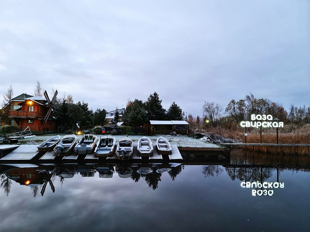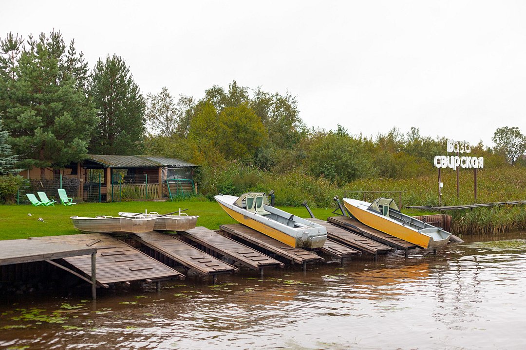 База отдыха «Свирская» располагает стоянкой на воде с собственным слипом и удобным подъездом к берегу, что гарантирует надежную и безопасную швартовку и дает возможность заправки судов с подключением к береговой электросети.