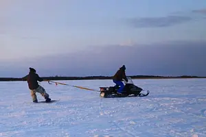 База отдыха «Свирская» организует доставку рыбаков на лед по реке Свирь на снегоходе с выходом в Ладожское озеро. Быстрый и удобный трансфер обеспечивает доступ к удаленным рыболовным точкам, позволяя безопасно и с комфортом начать ловлю.
