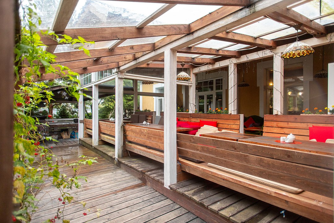 В меню ресторана можно найти блюда русской, европейской и восточной кухни. С начала мая гостям предлагается комплексное питание, которое можно заказать по удобному меню и в подходящее время.
