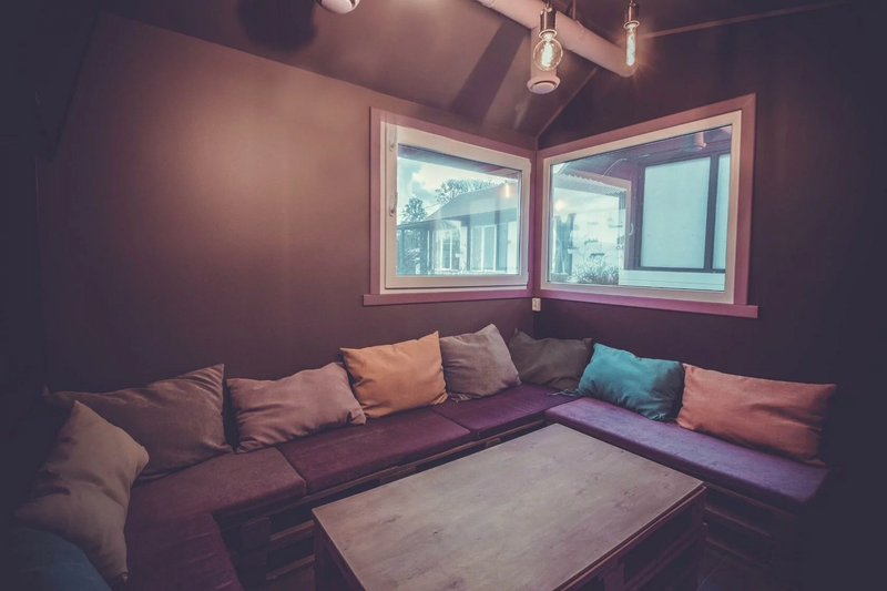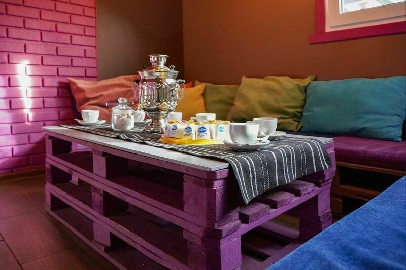 Кулер с микроволновкой находятся в холле отеля, в нем же расположена общая зона отдыха с ТВ и выходом в сеть.