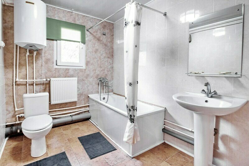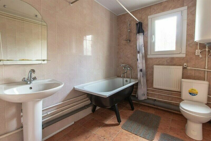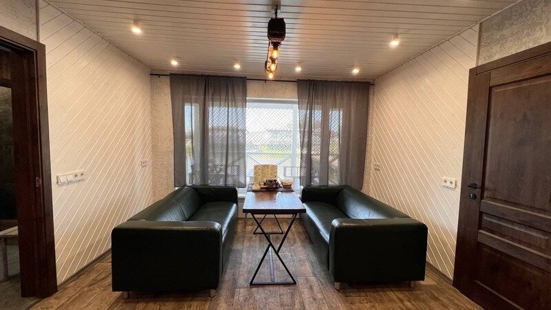 Одна из двух половин коттеджа: 4 спальни, просторная гостиная, диван-кровать, кухня, 2 туалета, душевая и ванная, зона с мангалом под крышей, Wi-fi, настольные игры, плоский телевизор.