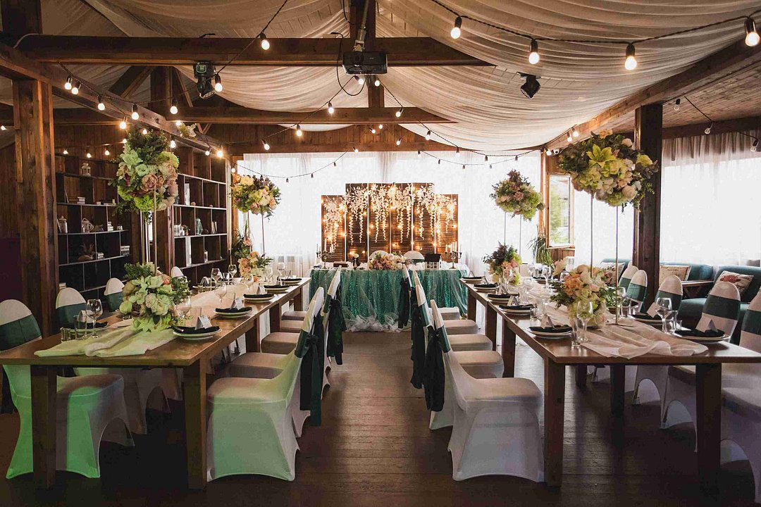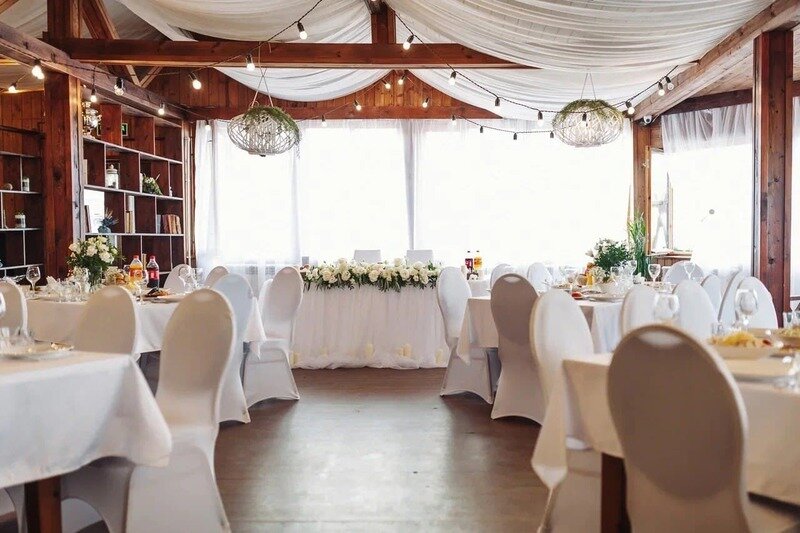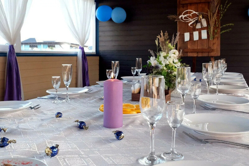 Атмосферный банкетный зал на базе отдыха «Сойкино». Вместимость зала — до 85 посадочных мест.