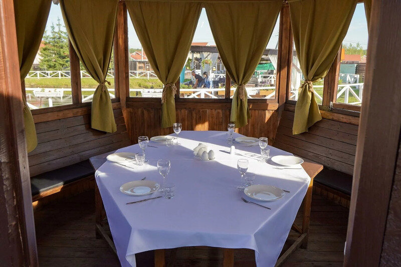 Уютная атмосфера, широкий выбор блюд русской и европейской кухни, блюда на открытом огне.