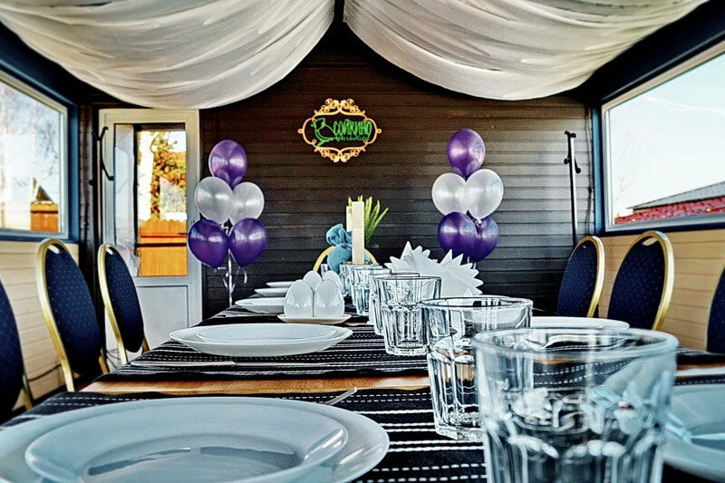 Подходит как для небольших посиделок, так и для романтического вечера, питания экскурсионных групп, проведения свадеб, больших корпоративов и дней рождения.