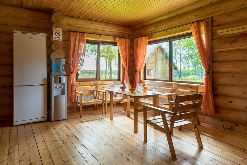 Семейный отдыхДостоинстваХороший вариант для тех, кто любит отдых на природе. Гостевые домики просторные и комфортные, они находятся прямо на территории леса. Сюда хорошо приезжать на отдых зимой, вокруг базы проложена лыжня и работает прокат лыж, дети могут покататься с горки на ватрушке. Летом можно устроить пикник и пожарить шашлыки.
