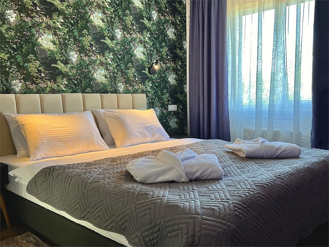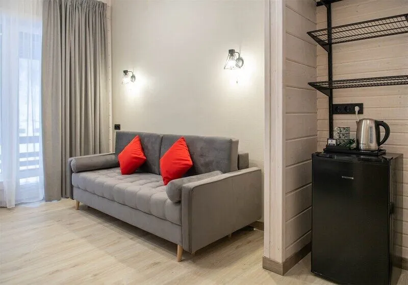 Однокомнатный двухместный номер площадью 25 кв. м. с с большими панорамными окнами и собственной террасой.