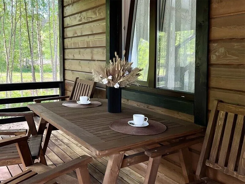 Уютные деревянные коттеджи финского типа с террасой, рассчитаны на комфортный семейный отдых 4-6 человек.