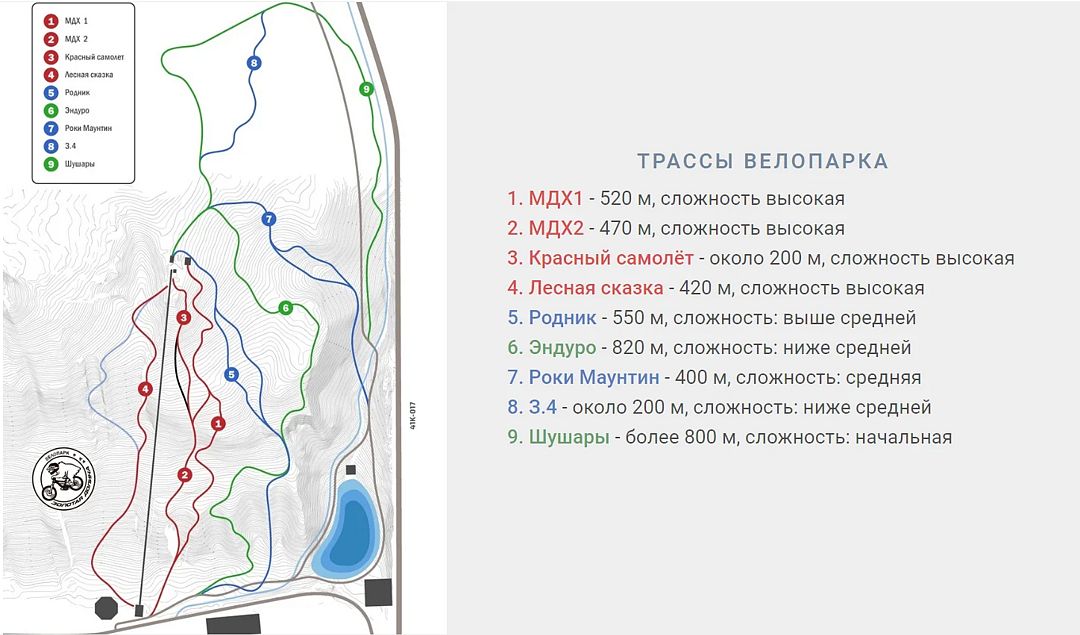 С 2015 года на территории курорта действует первый в Северо-Западном регионе полноценный велопарк с подъемником для экстремального катания на горных велосипедах. Построено 9 трасс различной сложности, регулярно проводятся соревнования регионального уровня, а сам курорт стал точкой притяжения для спортсменов со всего Северо-Запада.