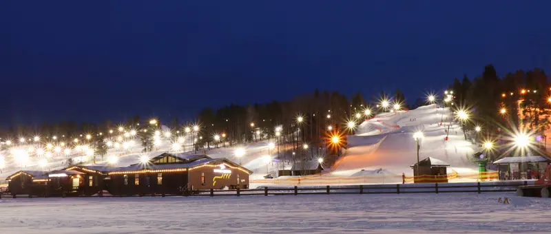 - расположен у подножия горнолыжного склона, на берегу родникового озера;