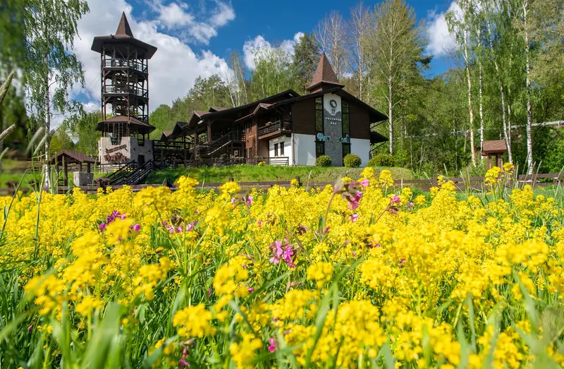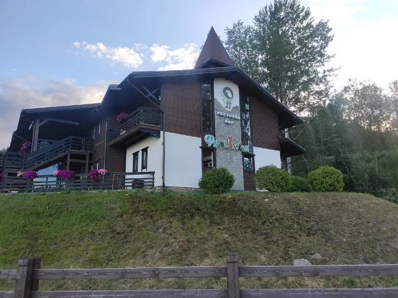 Гостиница располагается в верхнем парке "Золотой Долины" на вершине склона.
