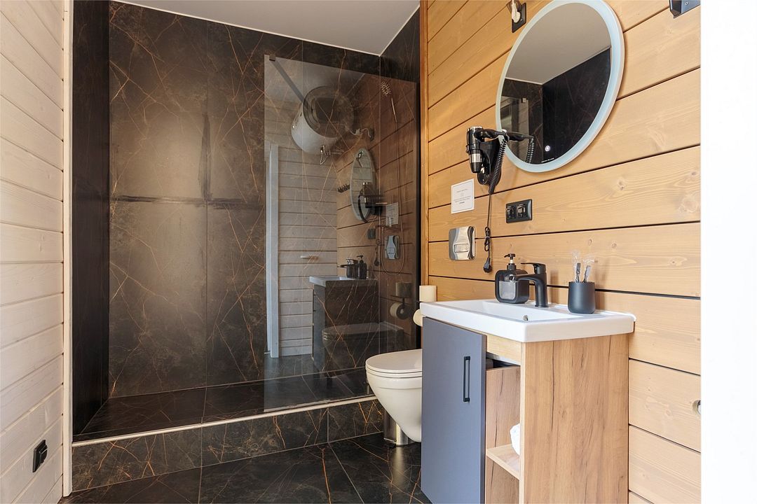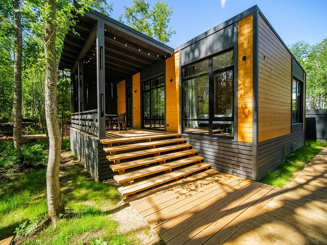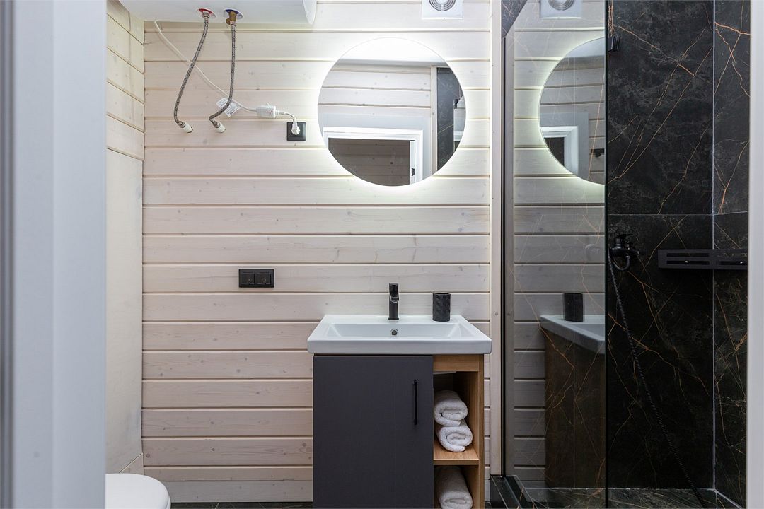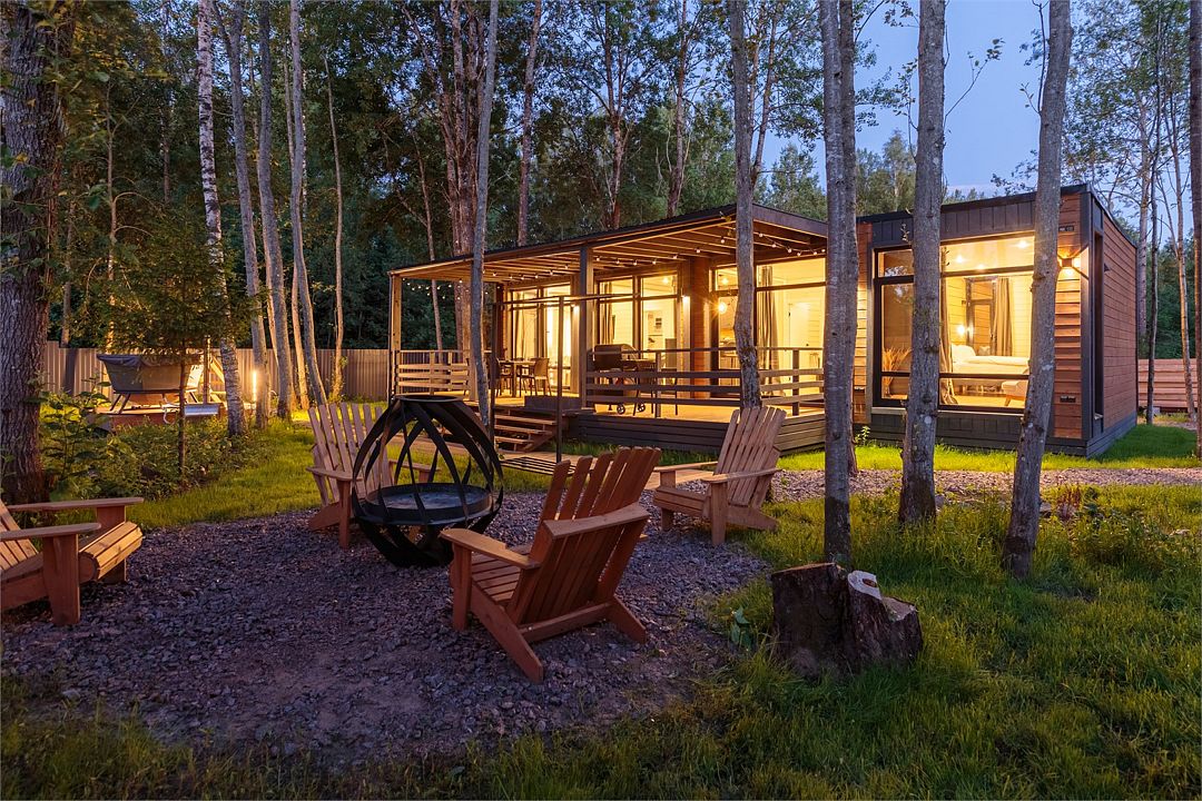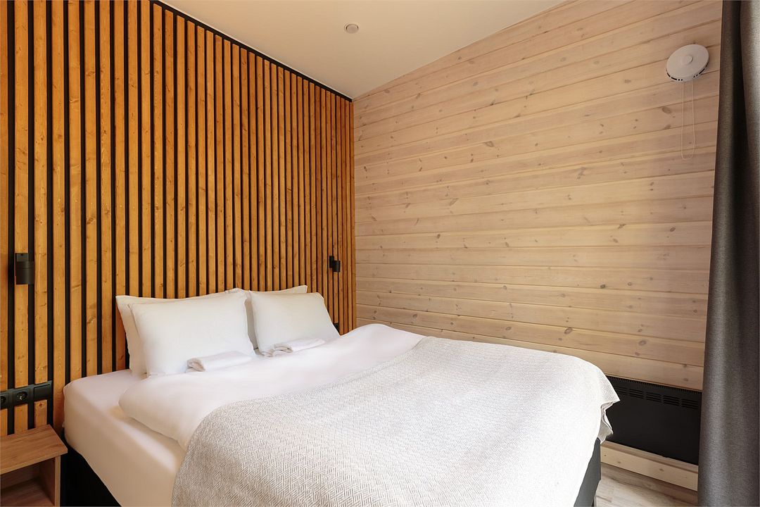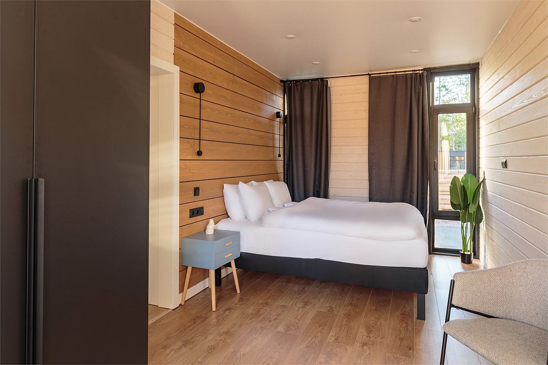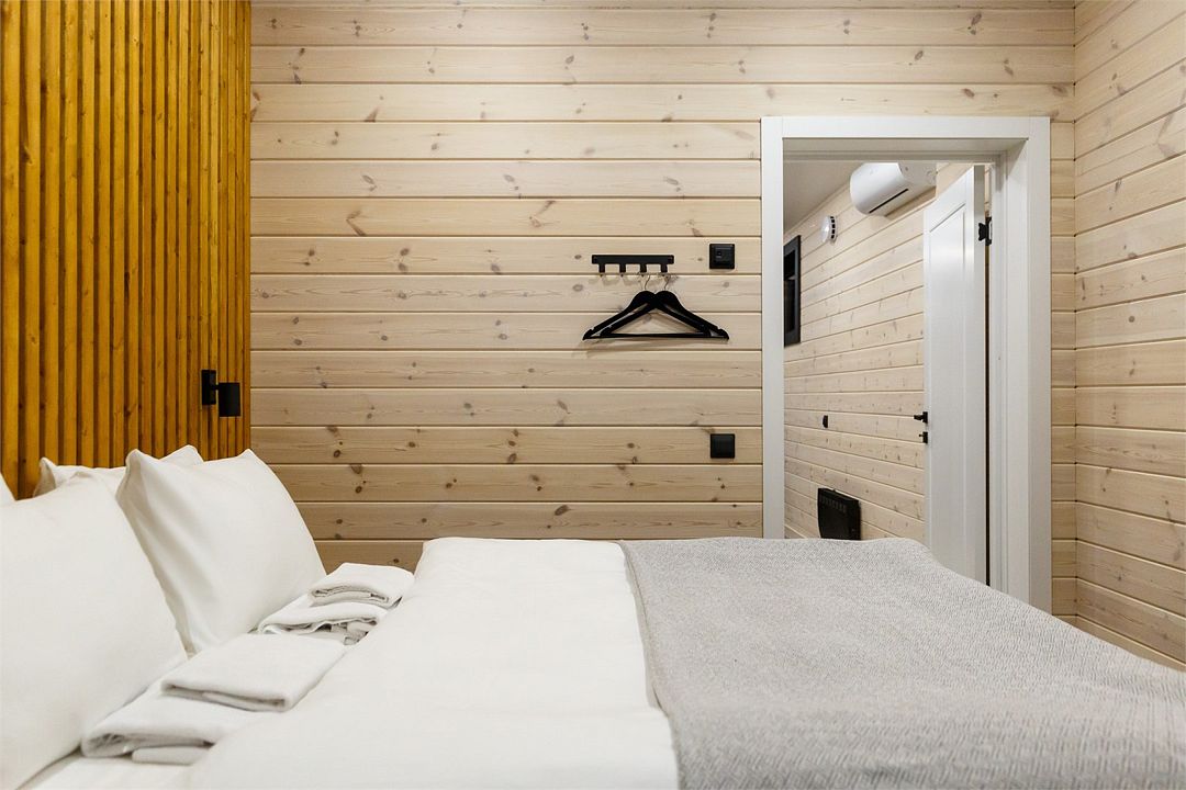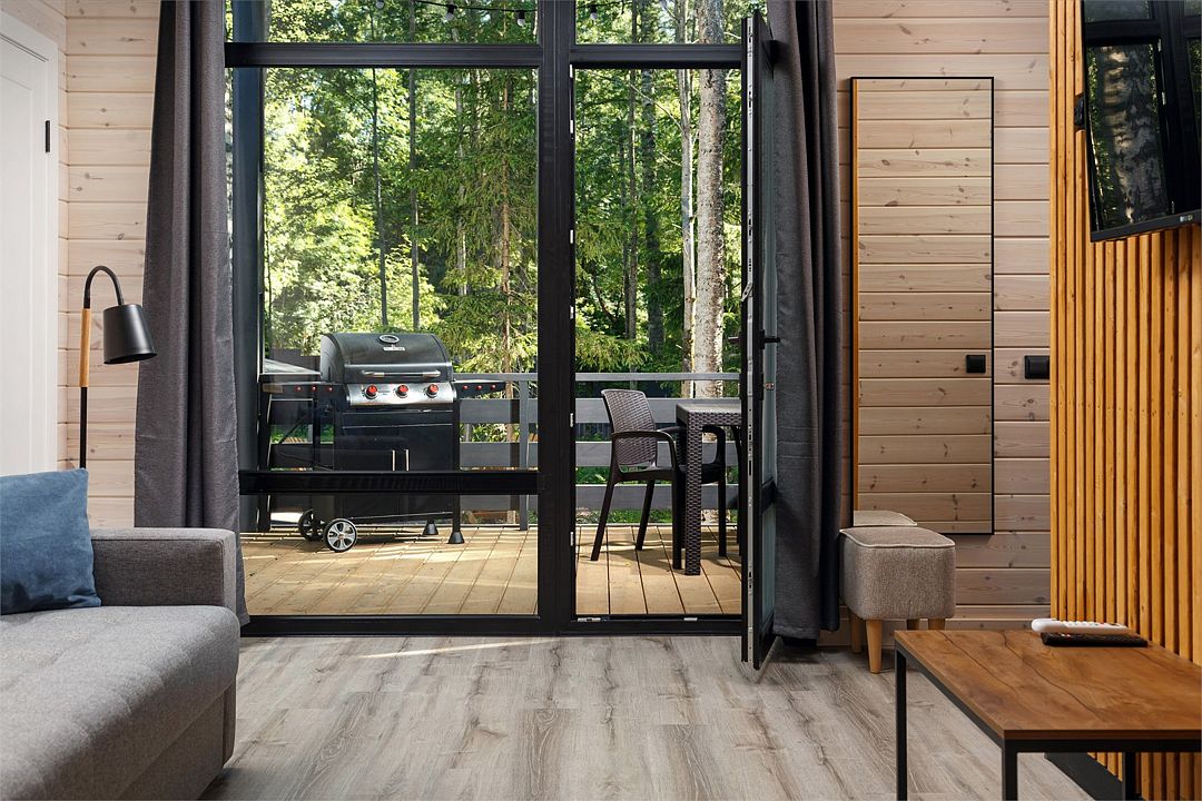Коттеджи рассчитаны на компанию от 2 до 6 человек и обустроены с заботой о вашем комфорте. В просторной кухне-гостиной есть всё необходимое: холодильник, микроволновая печь, варочная панель и посудомоечная машина, а также полный набор посуды. Дополняют уют панорамные окна, наполняющие дом светом, тёплые полы и телевизор для вечернего досуга.