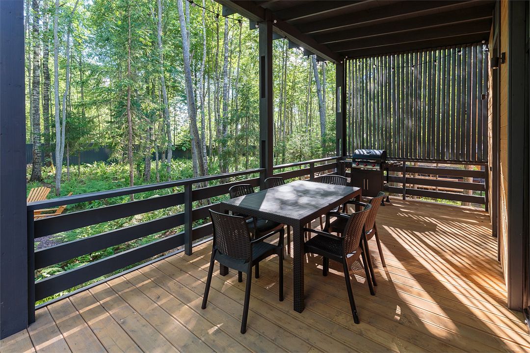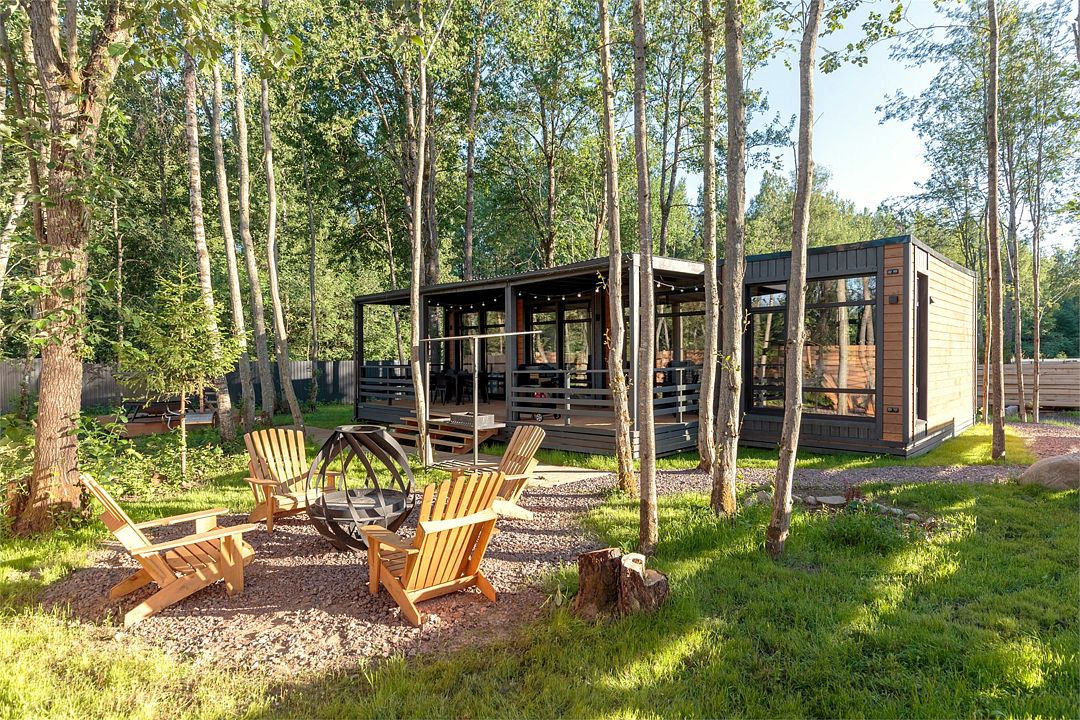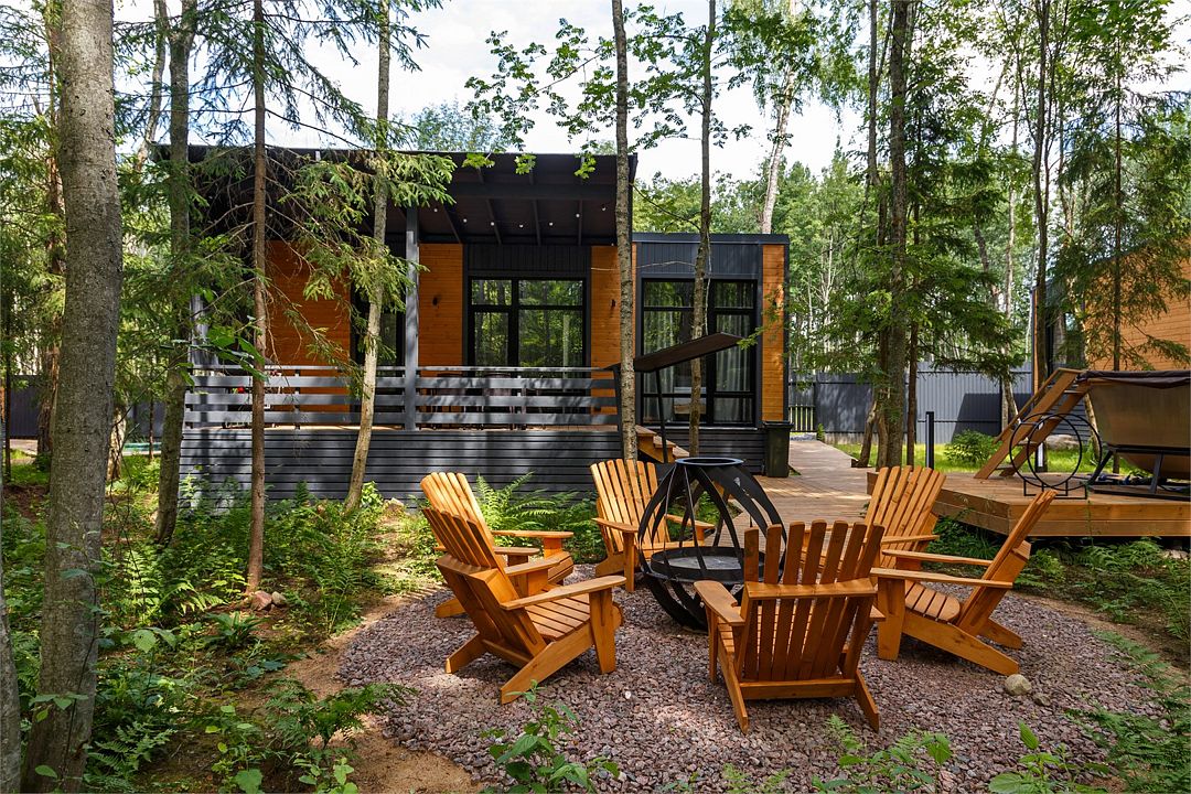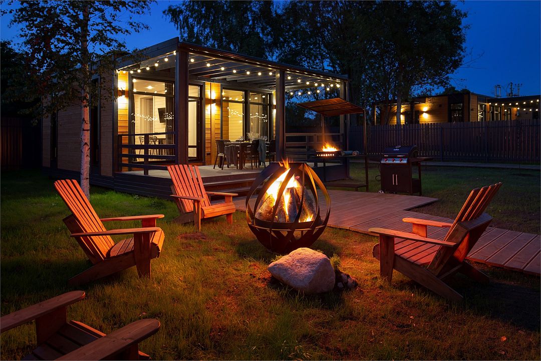 Особое внимание уделено зоне отдыха на свежем воздухе. Возле каждого коттеджа оборудована специальная площадка для барбекю с двумя видами мангалов — классическим и газовым, а также большая костровая зона с удобной садовой мебелью.