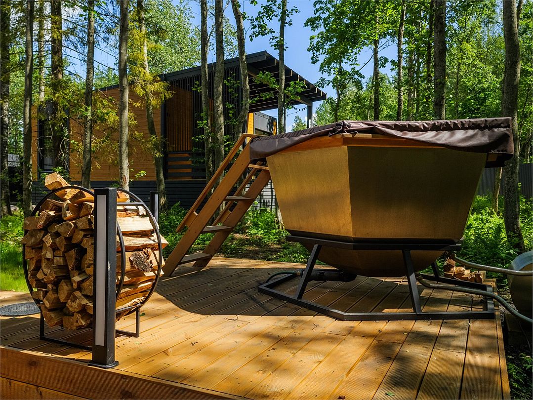 Читать полностьюСвой банный чан есть у каждого домика, некоторые домики оборудованы и баней, и банным чаном.