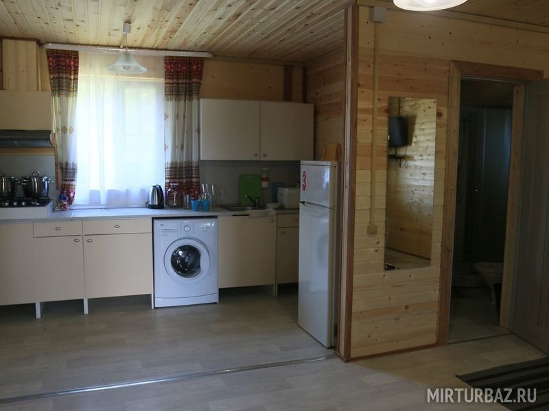 - полноценная кухня (чайник, плита, холодильник, посуда, мойка);