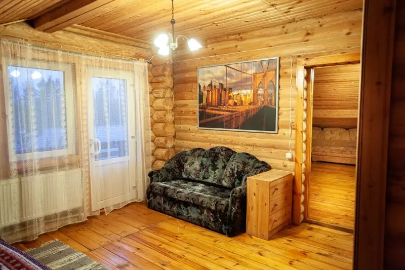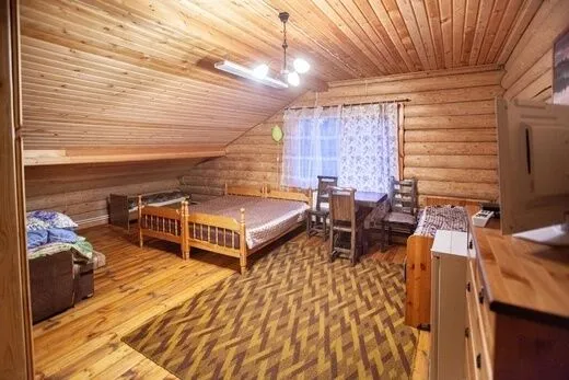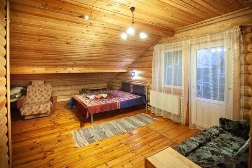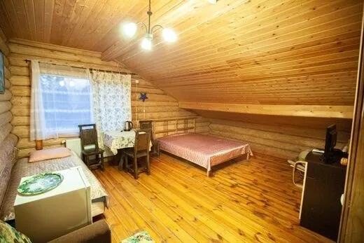 Двухкомнатный улучшенный номер с балконом на втором этаже бревенчатого дома для проживания до шести человек. Оборудован мини-холодильником, чайником, телевизором.