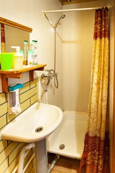 Туалетная комната оснащена душевой кабинкой, раковиной, унитазом. В номере есть горячая и холодная вода, отопление.