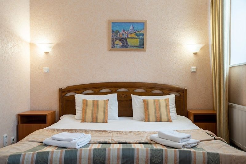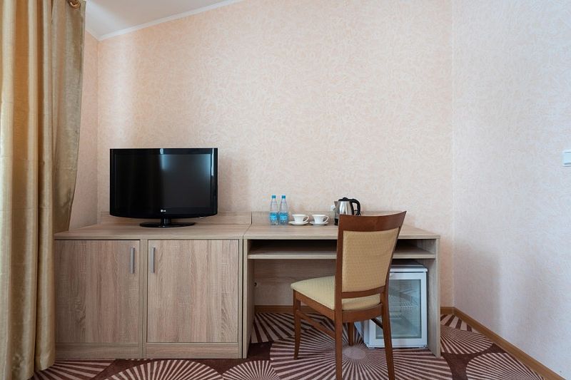 Номер Стандарт идеально подойдёт для комфортного размещения двух гостей, ценящих идеальное соотношение цены и качества, и удивит повышенным уровнем оснащения. Внутри - просторная кровать, вместительный шкаф, телевизор, чайник и оборудованная уборная.