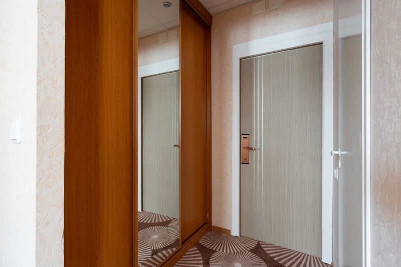 Номер Улучшенный стандарт идеально подойдёт для комфортного размещения двух гостей и порадует более премиальной планировкой и оснащением. Внутри - удобная кровать с прикроватными тумбочками, вместительный шкаф, телевизор, чайник и оборудованная уборная.