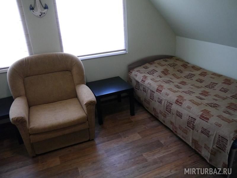 Один трёхместный номер на втором этаже. На первом этаже находится просторная кухня с обеденной зоной в центре помещения. В коттедже имеется горячее и холодное водоснабжение.
