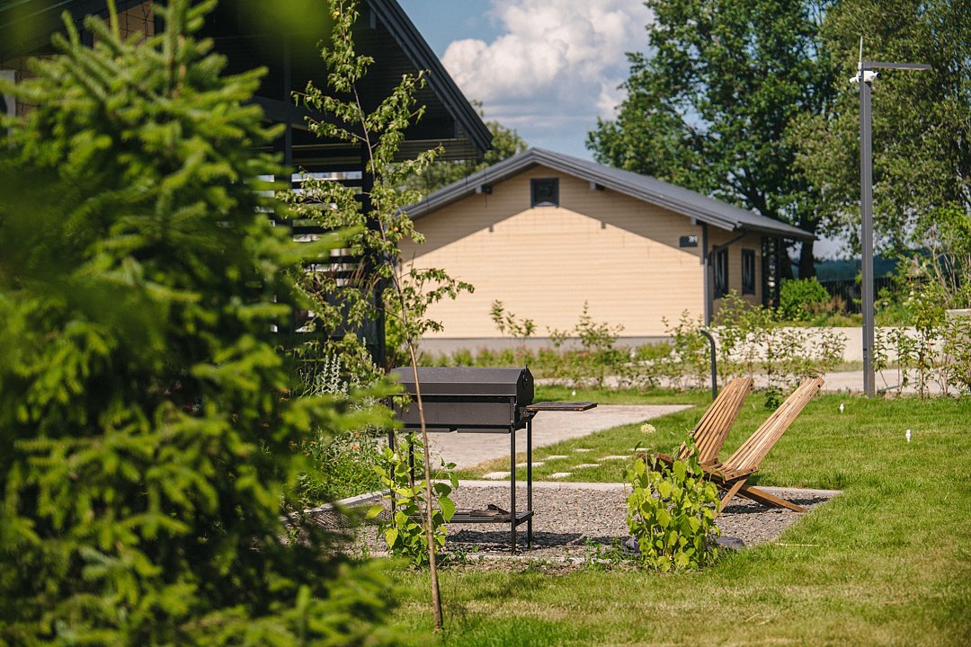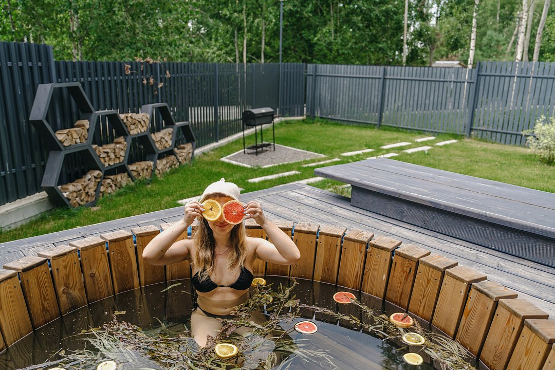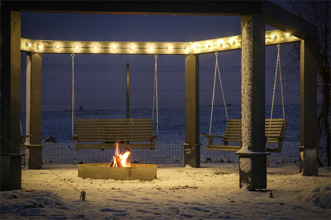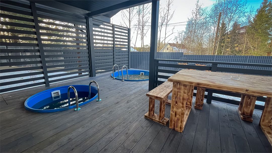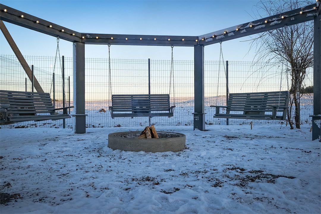 На территории обустроена уютная костровище с качелями, где можно насладиться закатами, пением под гитару и приготовлением зефира. Для любителей банных процедур – отдельная баня с горячим чаном под открытым небом.