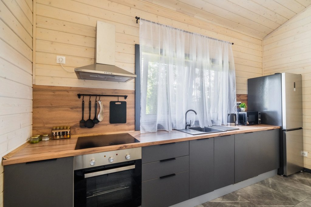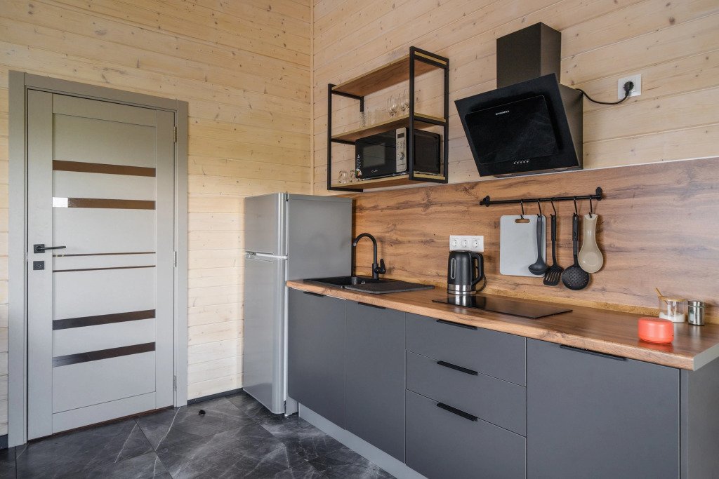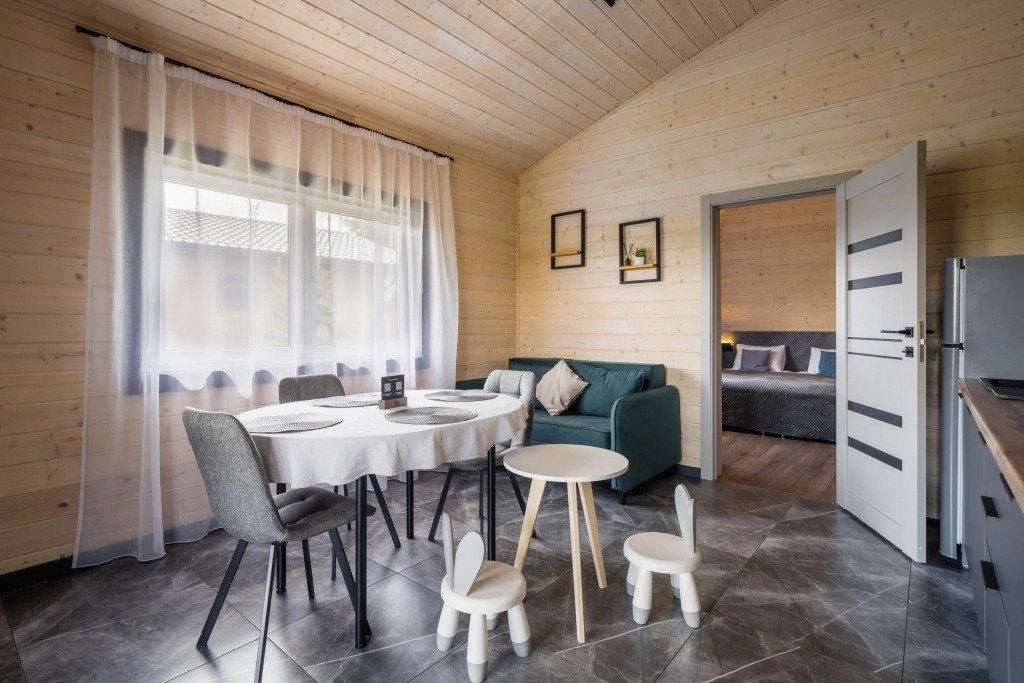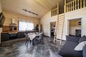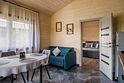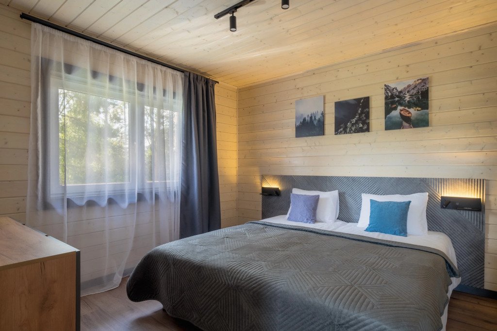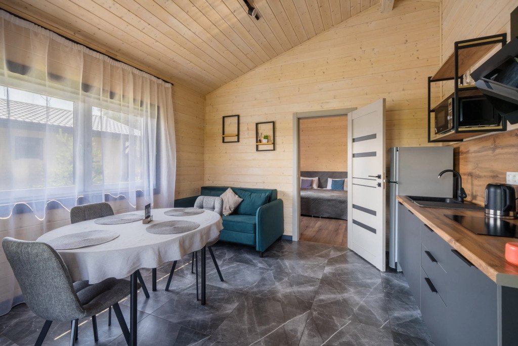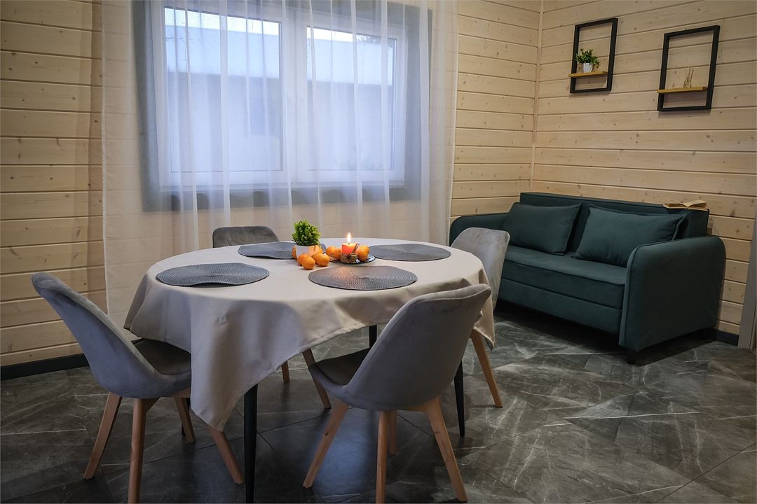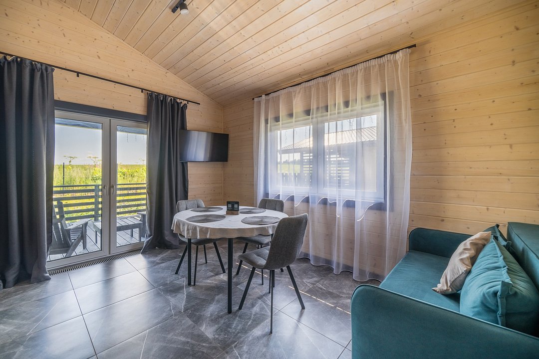 Здесь вас ждет просторная гостиная-кухня, где вы сможете готовить любимые блюда и собираться всей семьей или компанией друзей за просмотром фильма. А после насыщенного дня, проведённого на свежем воздухе, вас ждёт комфортная спальня с двуспальной кроватью для сладкого сна и полноценного отдыха.