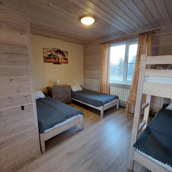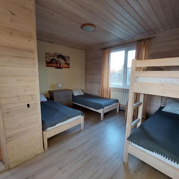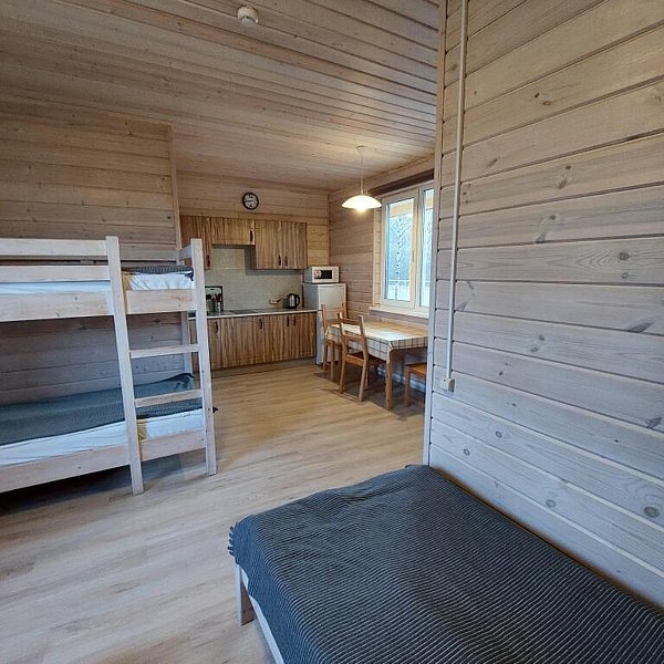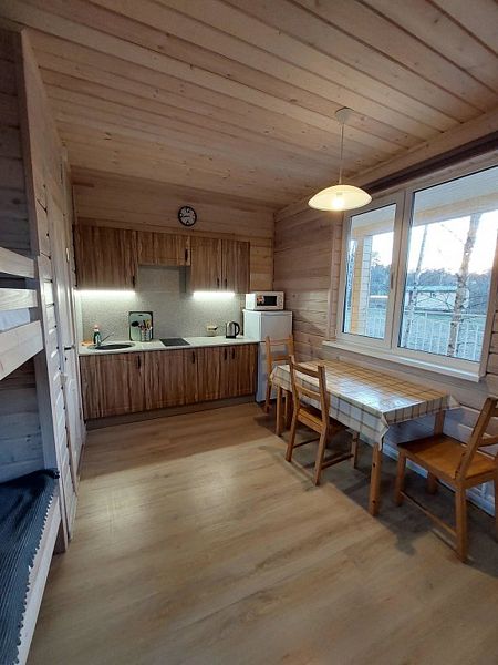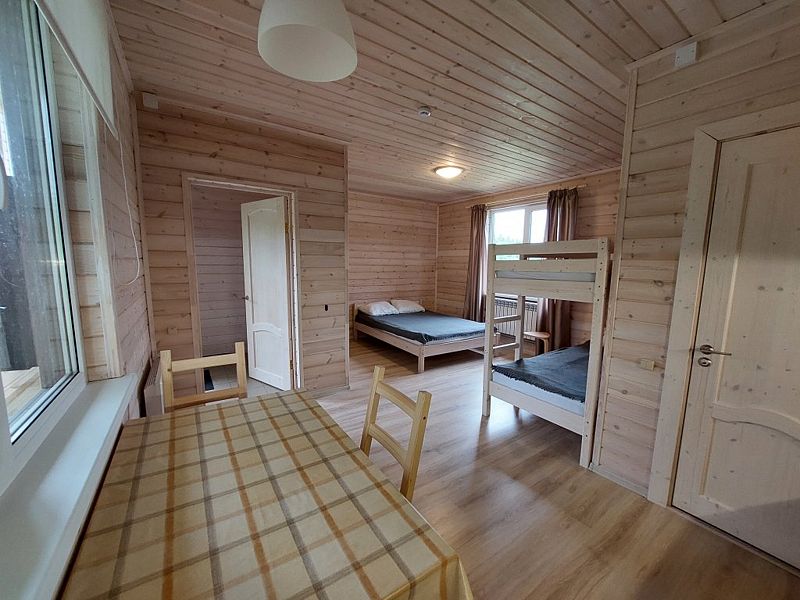 В номерах есть все необходимое для комфортного отдыха: кухня (двухкомфорочная электроплита, холодильник, чайник, микроволновка, посуда), санузел (туалет, душ), обеденный стол, две односпальные кровати и одна двухъярусная. Предоставляется постельное белье, большие полотенца, средство для мытья посуды, мыло для рук.