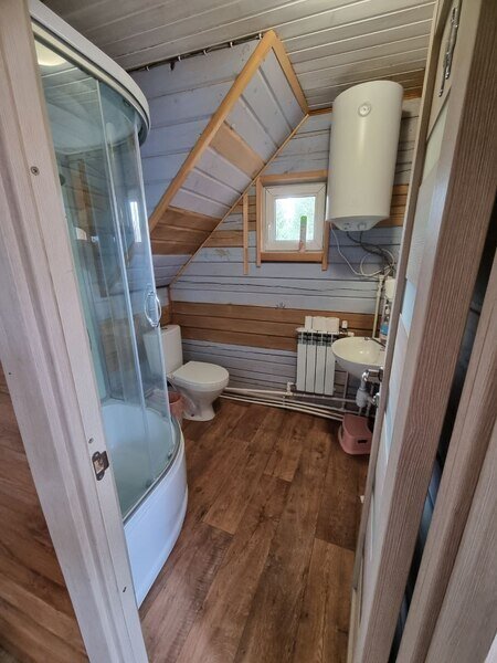 1 с/у на втором этаже и 1 с/у с душевой в морском стиле на первом этаже.
