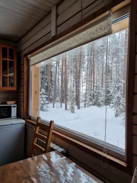 В "прянике" традиционное панорамное окно практически во всю стену, с которого открывается отличный вид на озеро Глубокое.