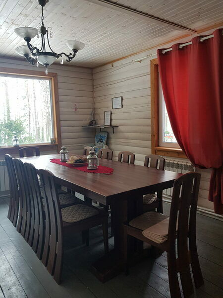 Дом рассчитан на 10 человек (8+2). Площадь 170кв.м. Материал - дерево (брус)