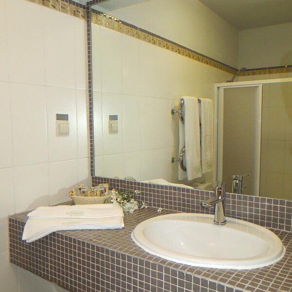 В ванной комнате: душ, фен, мягкие полотенца, туалетные принадлежности, халаты и тапочки. Просторные номера (21-30 кв.м.) с одной двуспальной кроватью. Комфортное размещение для путешественников, бизнесменов и даже молодоженов.
