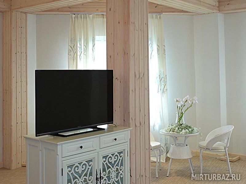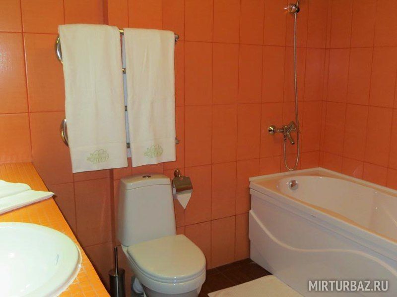 В ванной комнате: душ и гидромассажная ванная, фен, мягкие полотенца, туалетные принадлежности, халаты и тапочки. Это самый большой номер (52 кв.м.) идеально подойдет и для новобрачных, и влюбленных пар по особому случаю. В номере есть спальная и обеденная зоны, раскладной диван и музыкальный проигрыватель для настоящих романтиков!