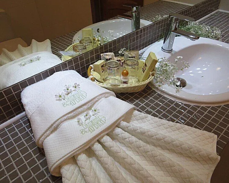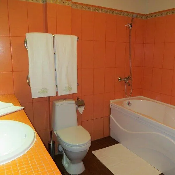 В ванной комнате: душ или ванная, мягкие полотенца, фен, туалетные принадлежности, халаты и тапочки. Номер De Luxe состоит из спальной и рабочей зон, отличается большой площадью (30-35 кв.м.) и повышенной комфортностью.