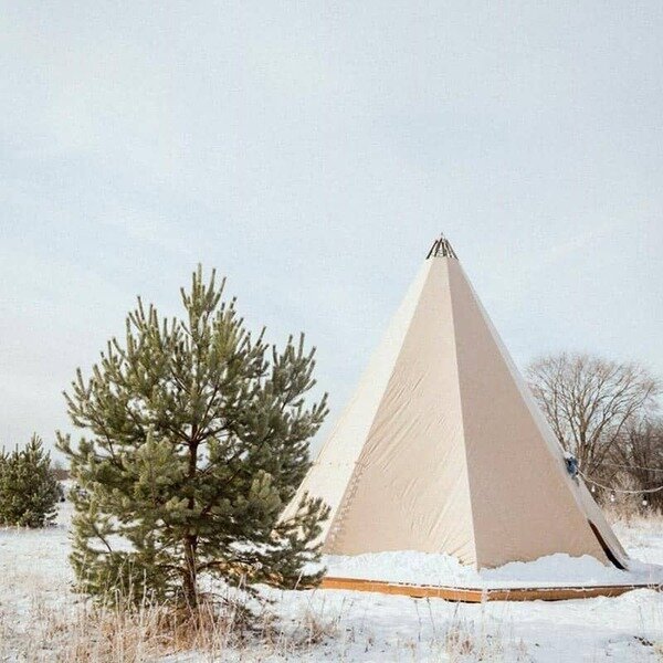 Каждый шатёр установлен на деревянный настил и оснащён обогревателем.